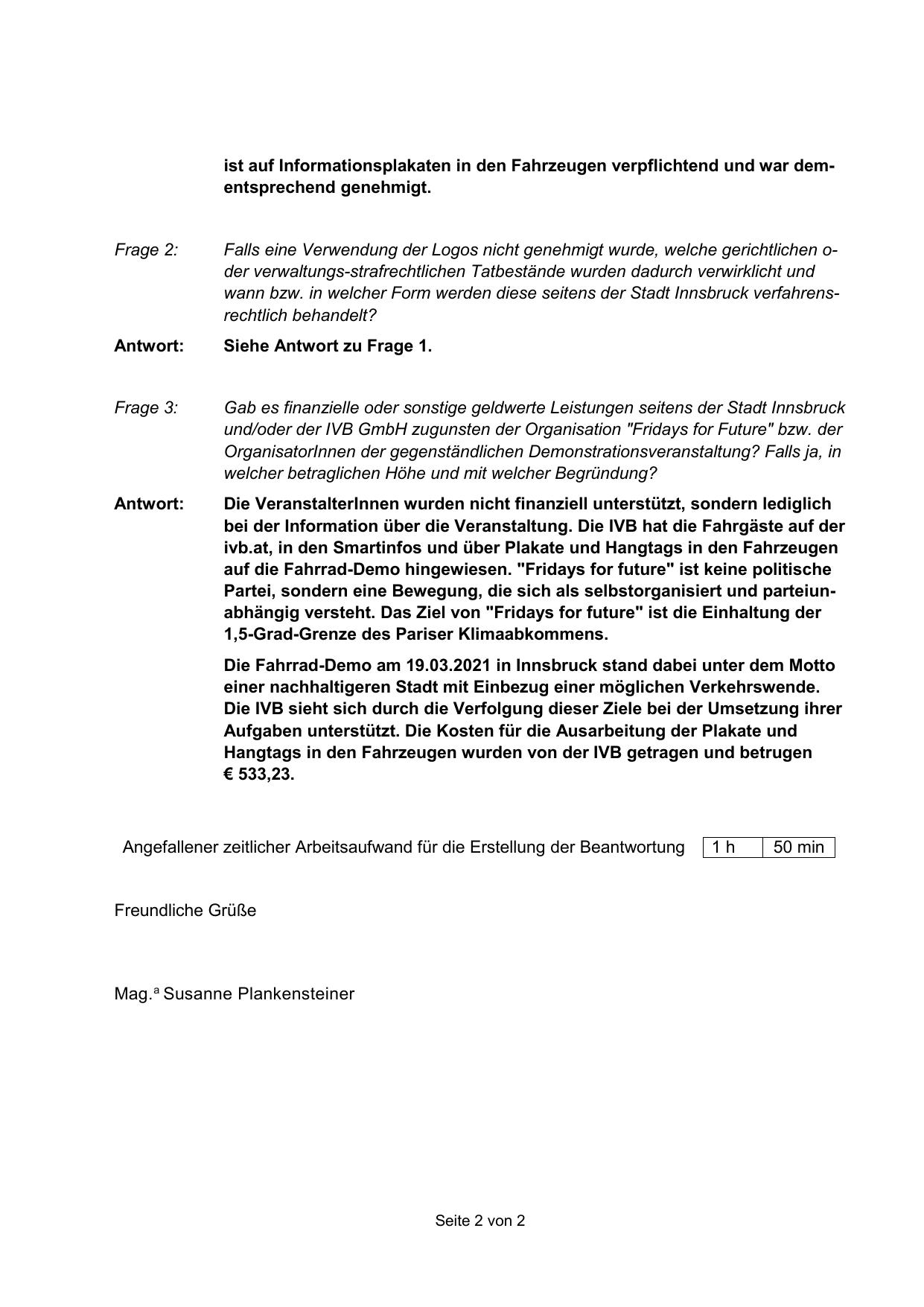 Hangtags in den Fahrzeugen wurden von der IVB getragen und betrugen