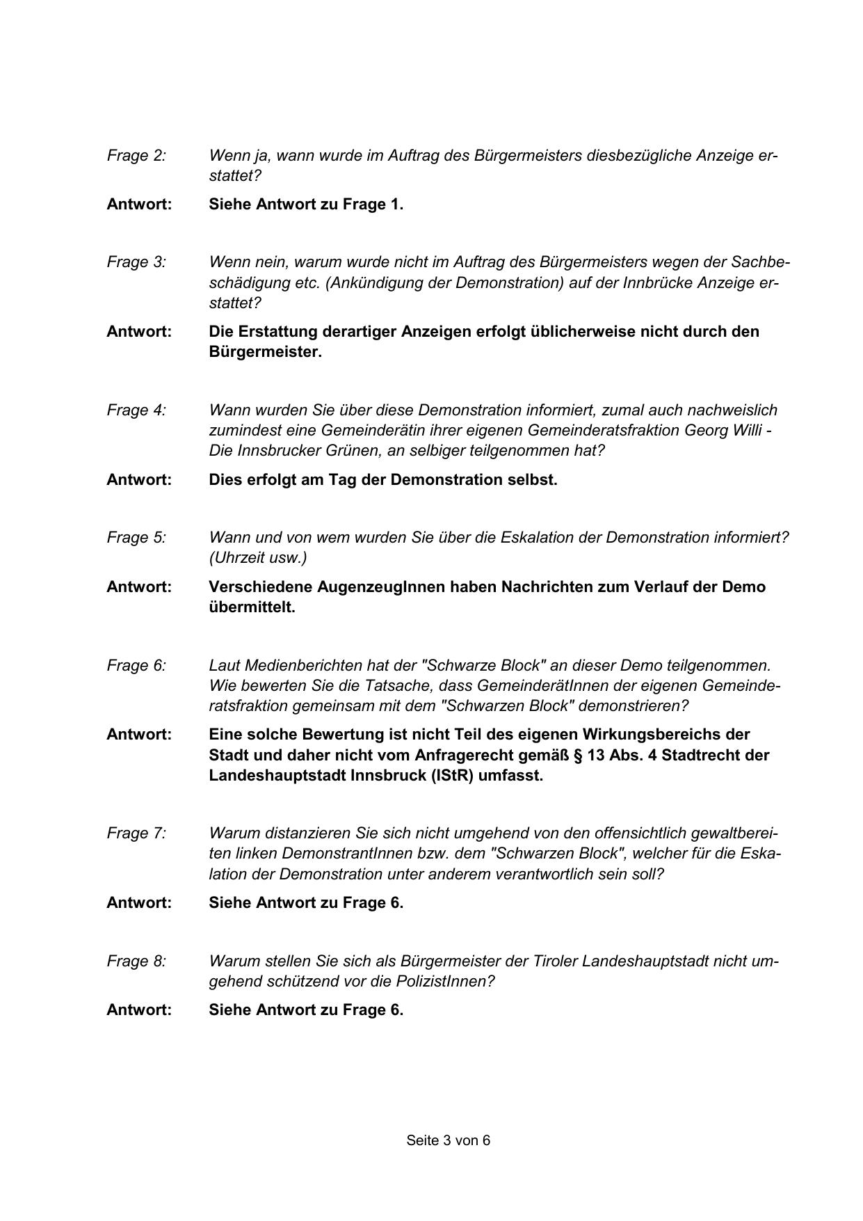 Wie bewerten Sie die Tatsache, dass GemeinderätInnen der eigenen Gemeinderatsfraktion gemeinsam mit dem "Schwarzen Block" demonstrieren?
