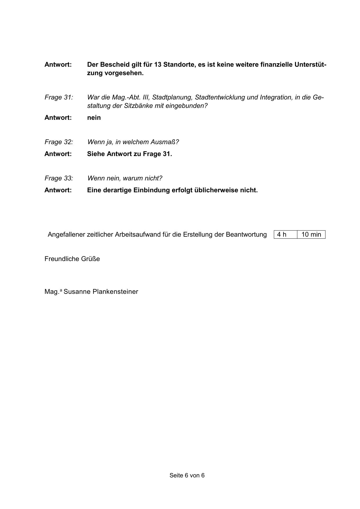 War die Mag.-Abt. III, Stadtplanung, Stadtentwicklung und Integration, in die Gestaltung der Sitzbänke mit eingebunden?