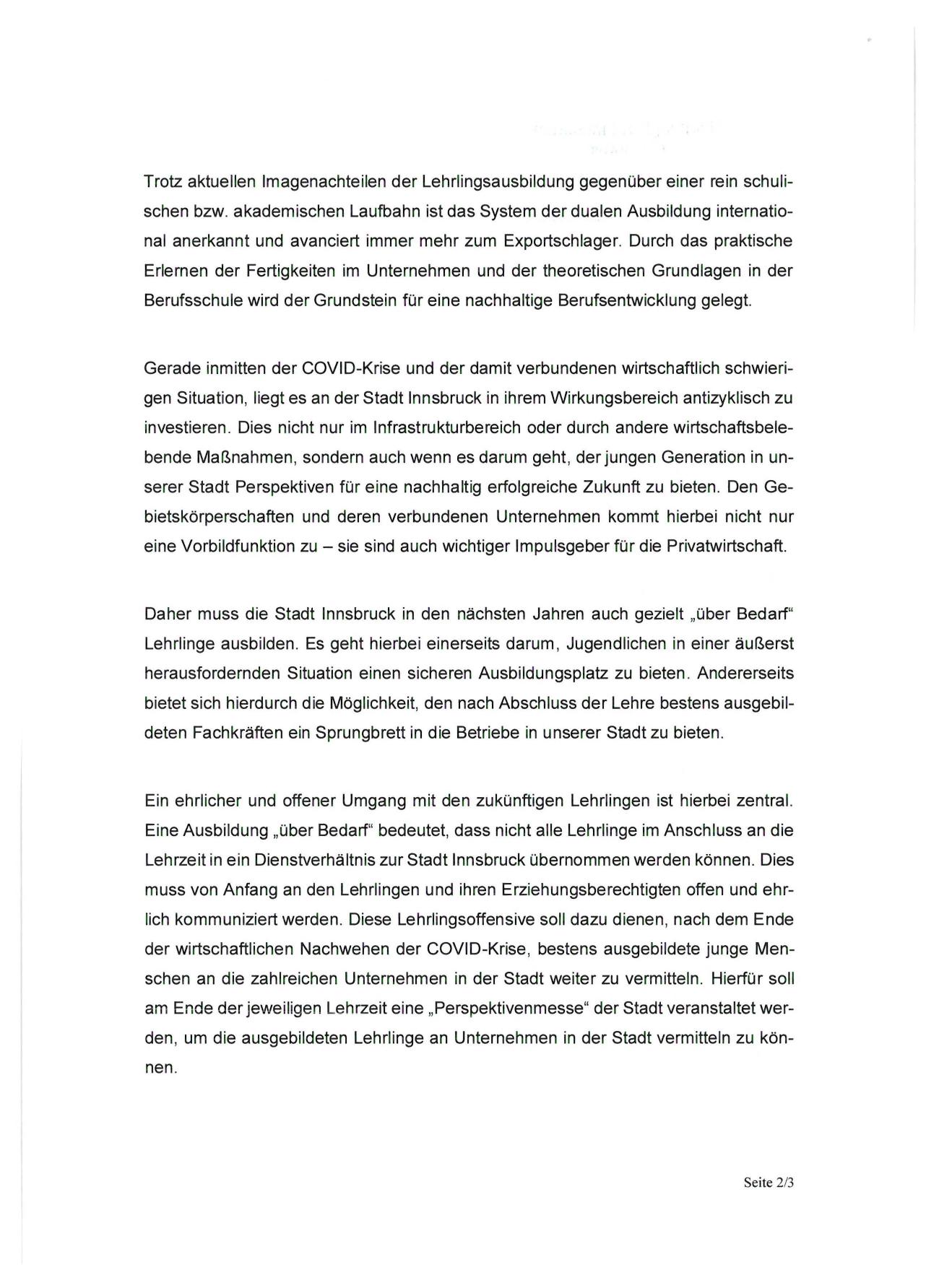 Lehrzeit in ein Dienstverhältnis zur Stadt Innsbruck übernommen werden können. Dies