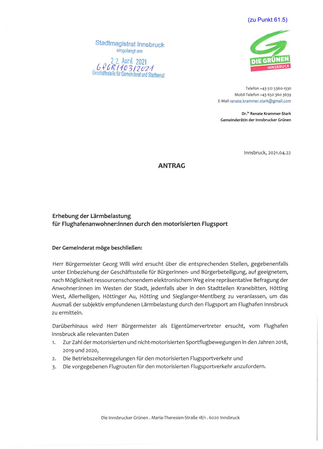 Herr Bürgermeister Georg Willi wird ersucht über die entsprechenden Stellen, gegebenenfalls