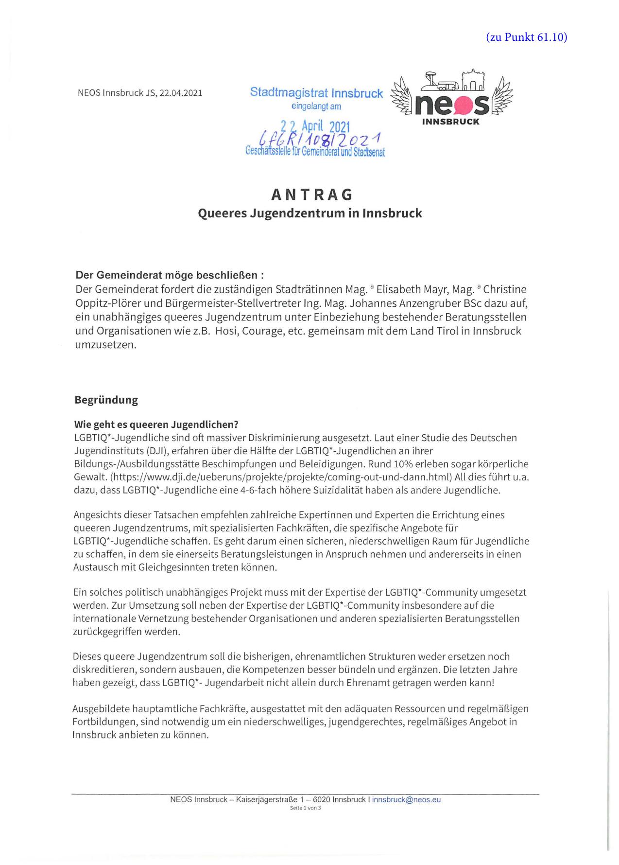 NEOS Innsbruck - Kaiserjägerstraße 1 - 6020 Innsbruck I innsbruck@neos.eu