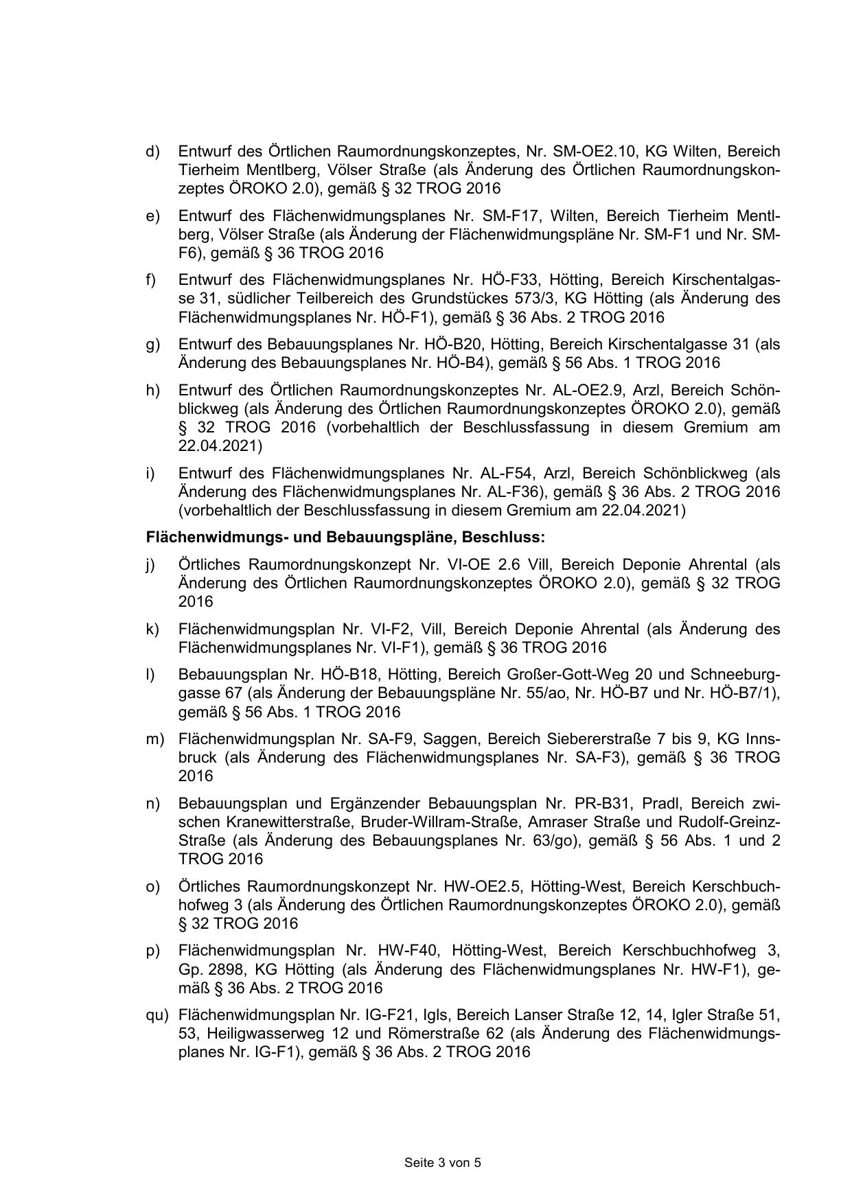 Gp. 2898, KG Hötting (als Änderung des Flächenwidmungsplanes Nr. HW-F1), gemäß § 36 Abs. 2 TROG 2016