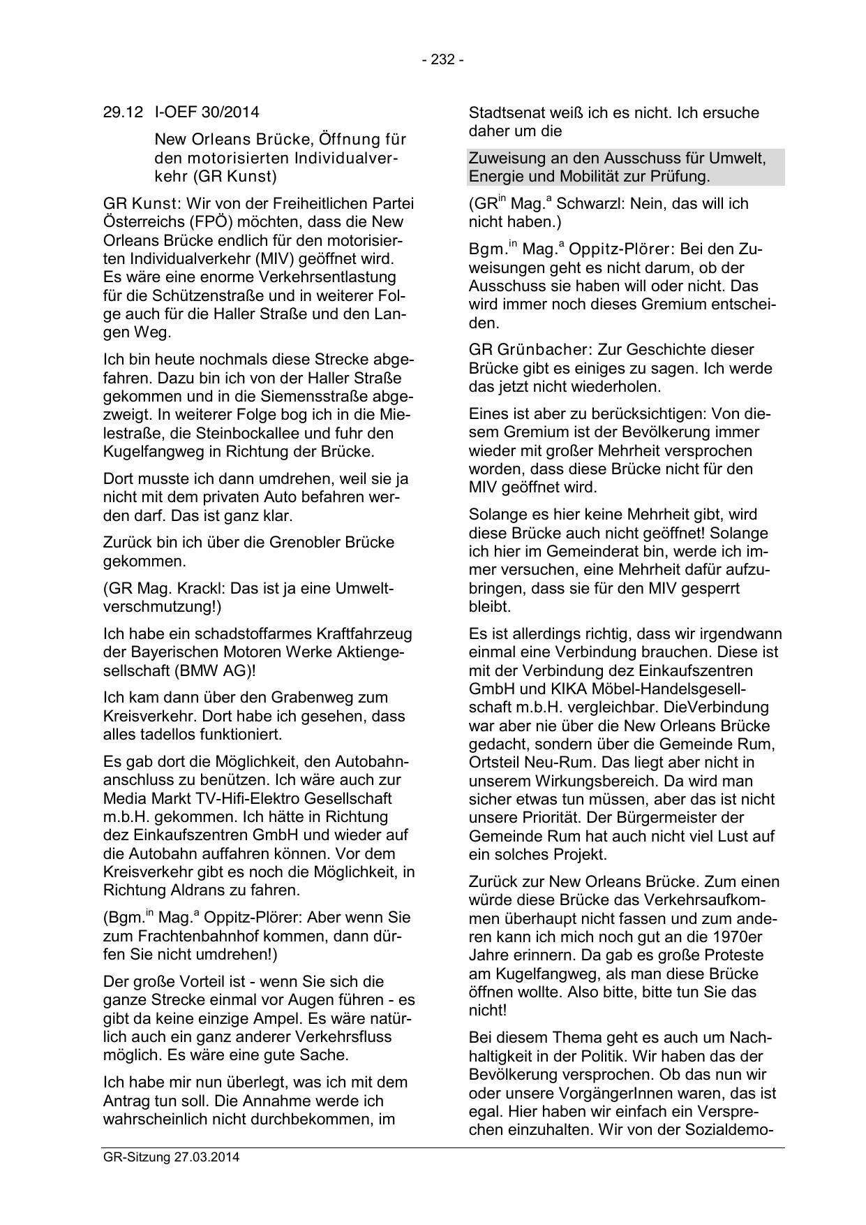 Stadtsenat weiß ich es nicht. Ich ersuche