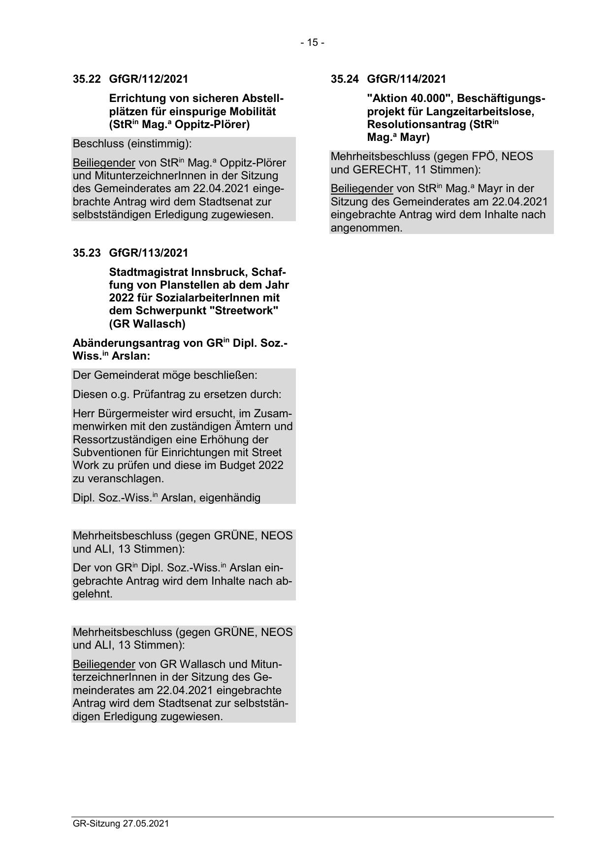 Beiliegender von GR Wallasch und MitunterzeichnerInnen in der Sitzung des Gemeinderates am 22.04.2021 eingebrachte