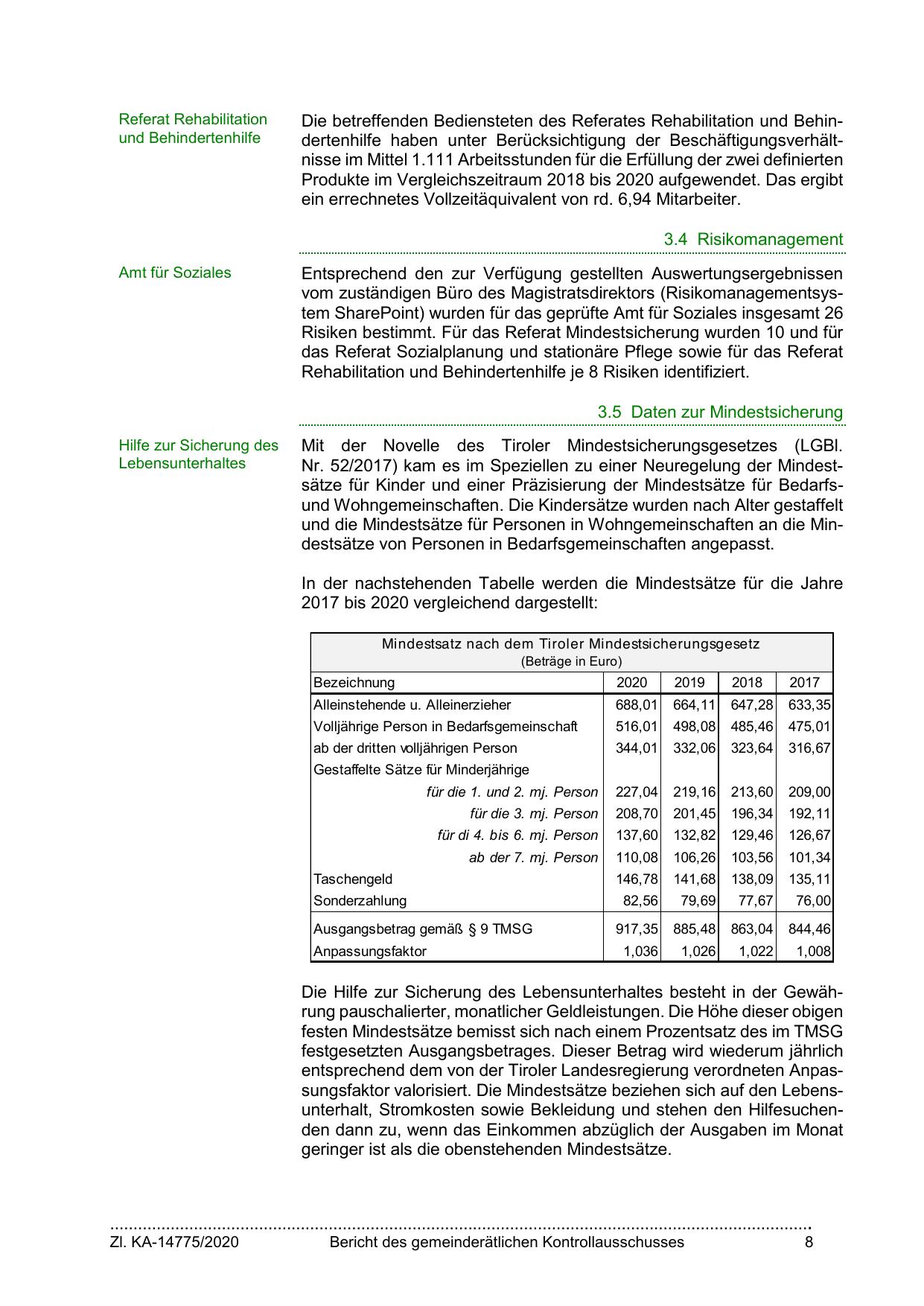 Risiken bestimmt. Für das Referat Mindestsicherung wurden 10 und für