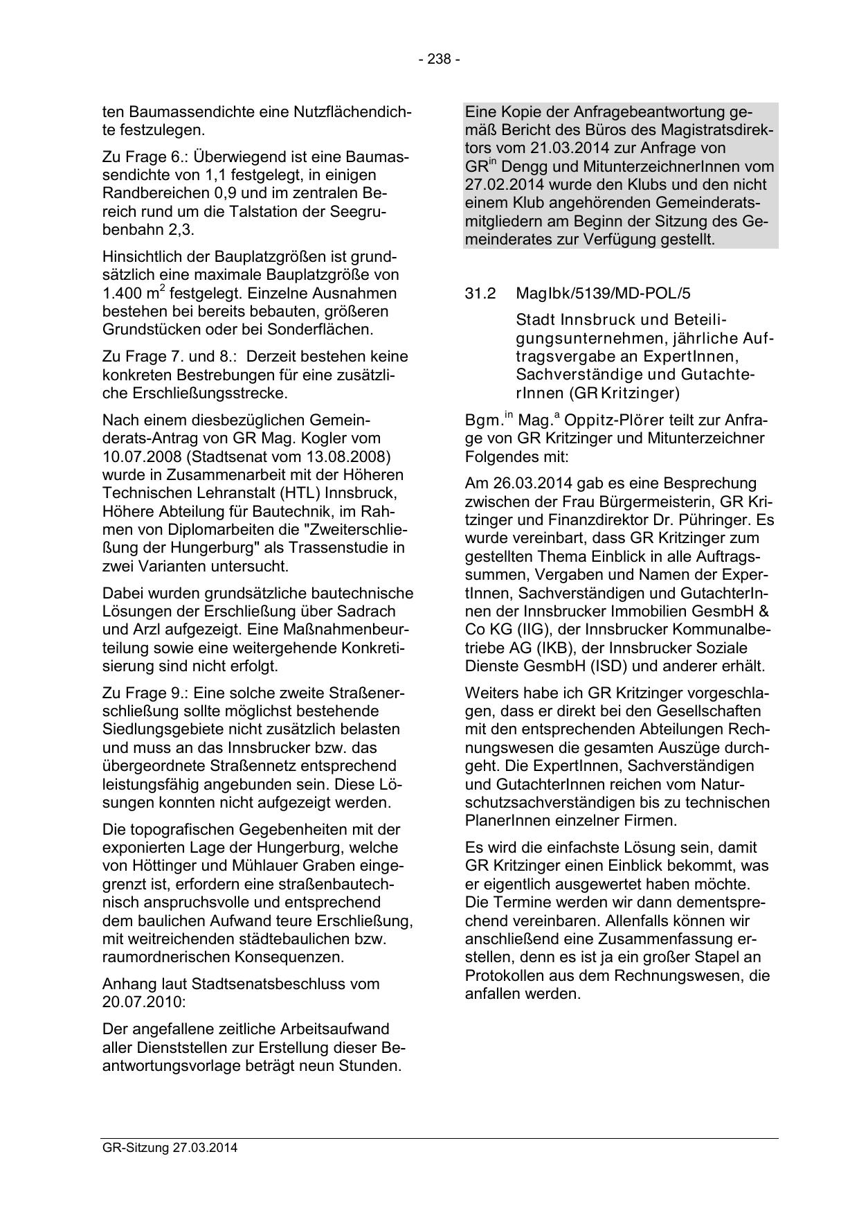 gestellten Thema Einblick in alle Auftragssummen, Vergaben und Namen der ExpertInnen, Sachverständigen und GutachterInnen der Innsbrucker Immobilien GesmbH &