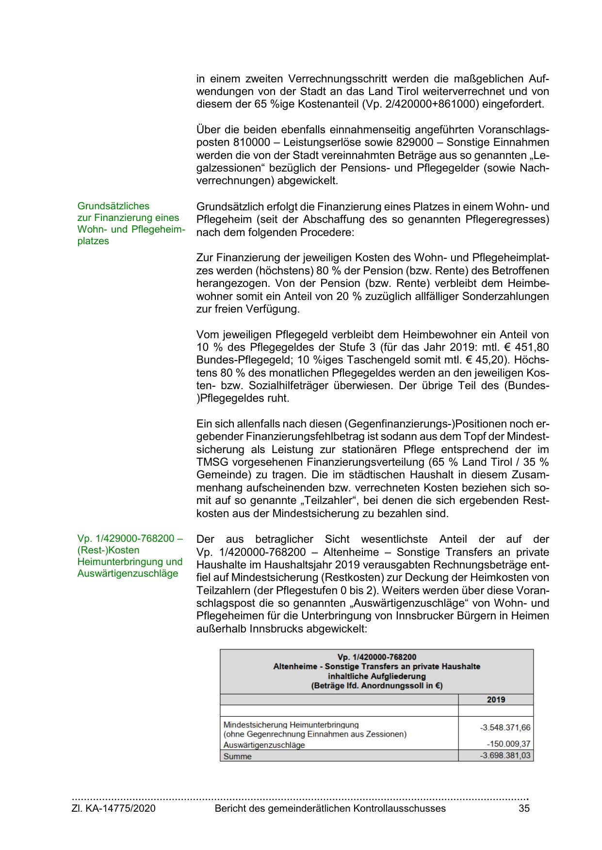 Ein sich allenfalls nach diesen (Gegenfinanzierungs-)Positionen noch ergebender Finanzierungsfehlbetrag ist sodann aus dem Topf der Mindestsicherung als Leistung zur stationären Pflege entsprechend der im