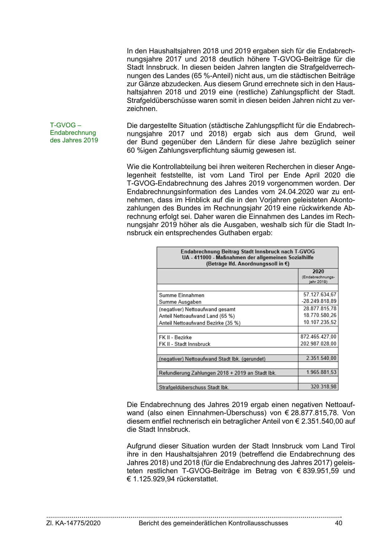 Endabrechnung Beitrag Stadt !Innsbruck nach T-GVOG