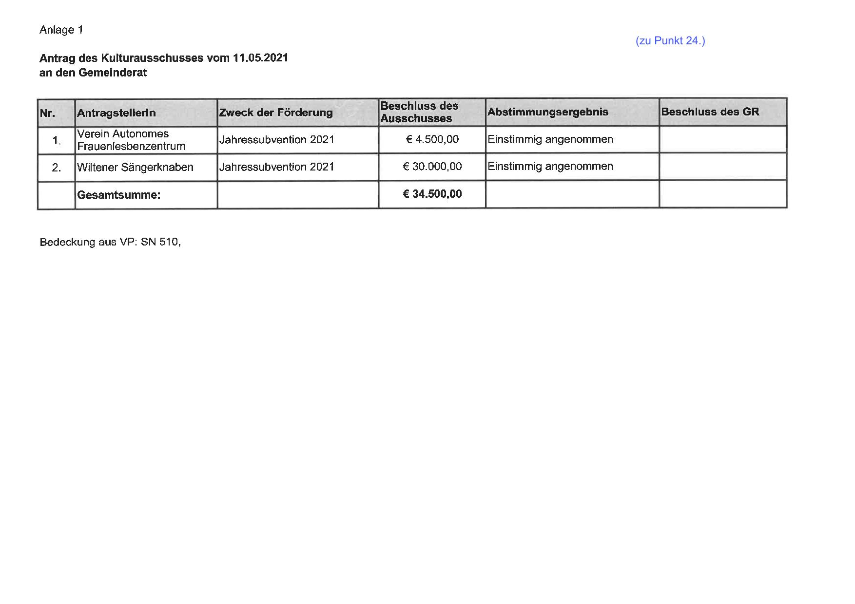 Antrag des Kulturausschusses vom 11.05.2021