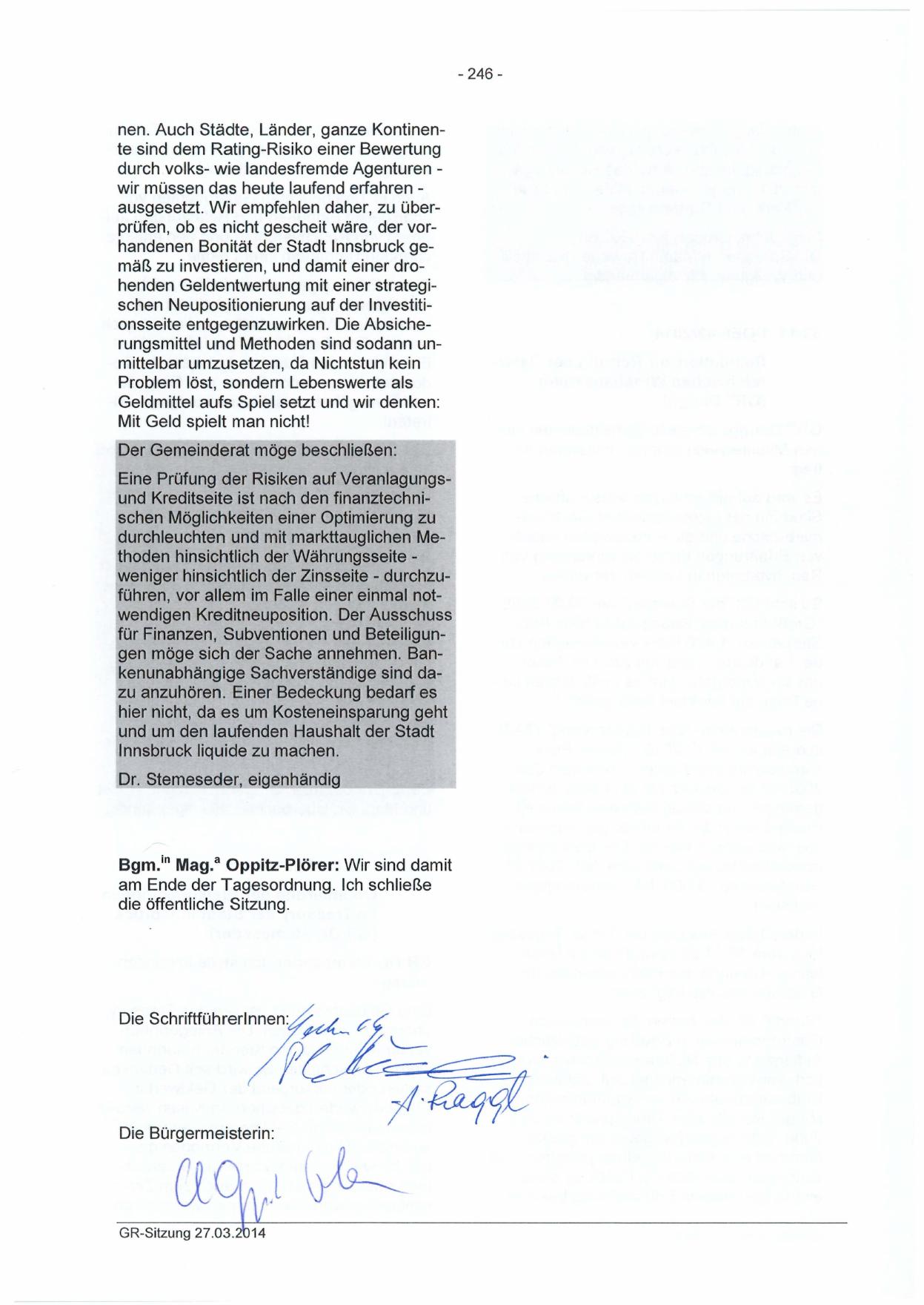 durch volks- wie landesfremde Agenturen wir müssen das heute laufend erfahren ausgesetzt. Wir empfehlen daher, zu überprüfen, ob es nicht gescheit wäre, der vorhandenen Bonität der Stadt Innsbruck gemäß zu investieren, und damit einer drohenden Geldentwertung mit einer strategischen Neupositionierung auf der Investitionsseite entgegenzuwirken. Die Absicherungsmittel und Methoden sind sodann unmittelbar umzusetzen, da Nichtstun kein