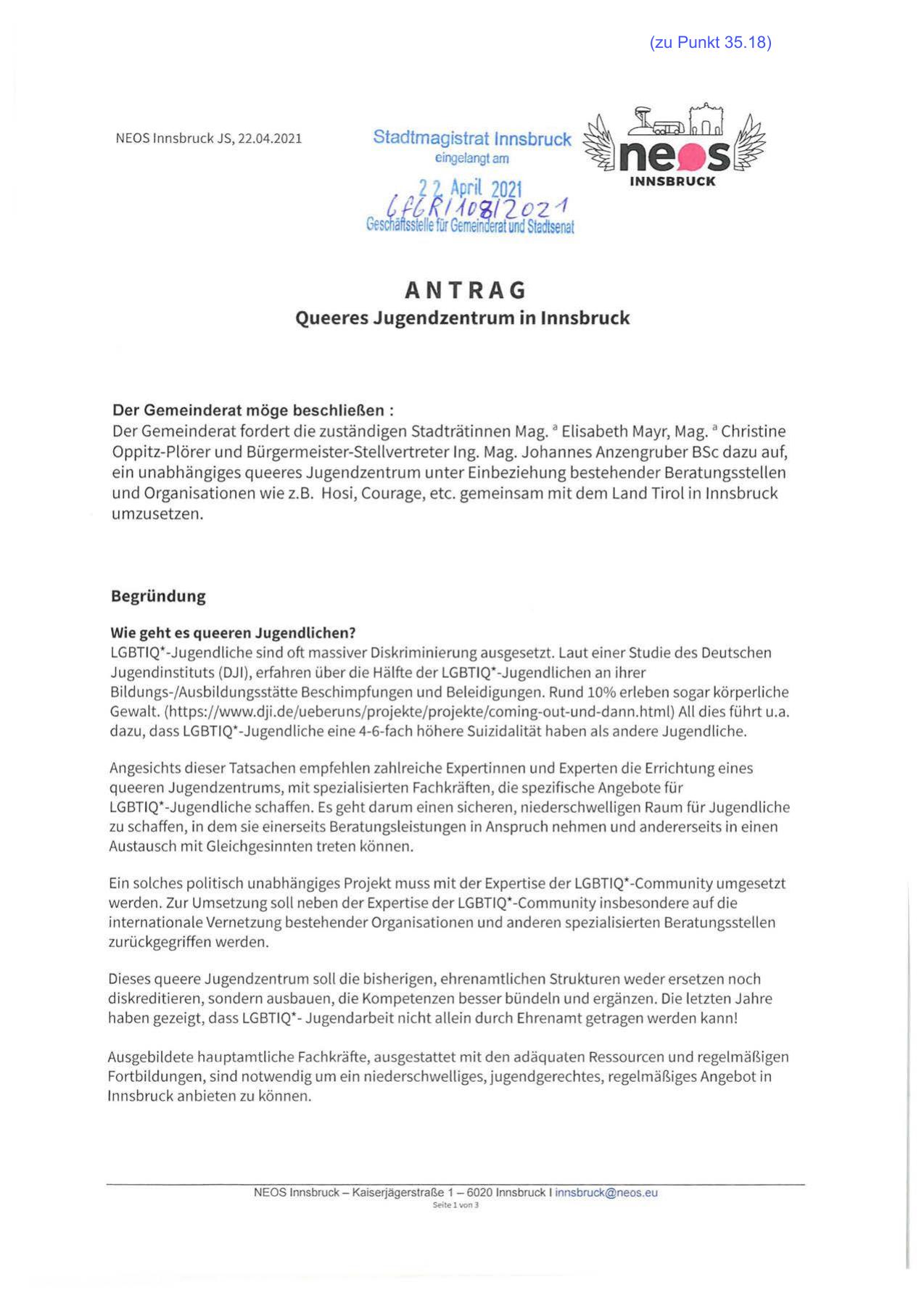 NEOS Innsbruck - Kaiserjägerstraße 1 - 6020 Innsbruck I innsbruck@neos.eu