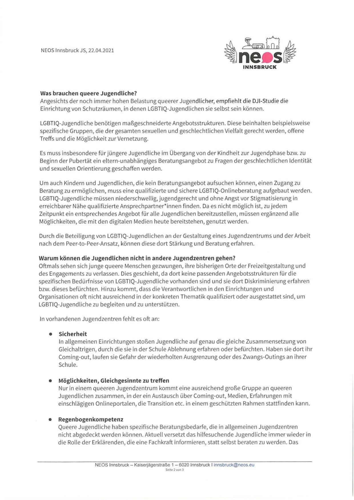 NEOS Innsbruck JS, 22.04.2021