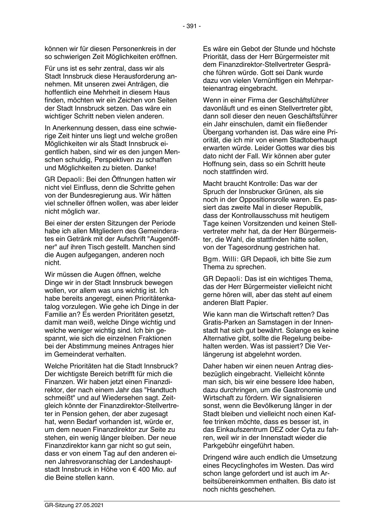 Bgm. Willi: GR Depaoli, ich bitte Sie zum