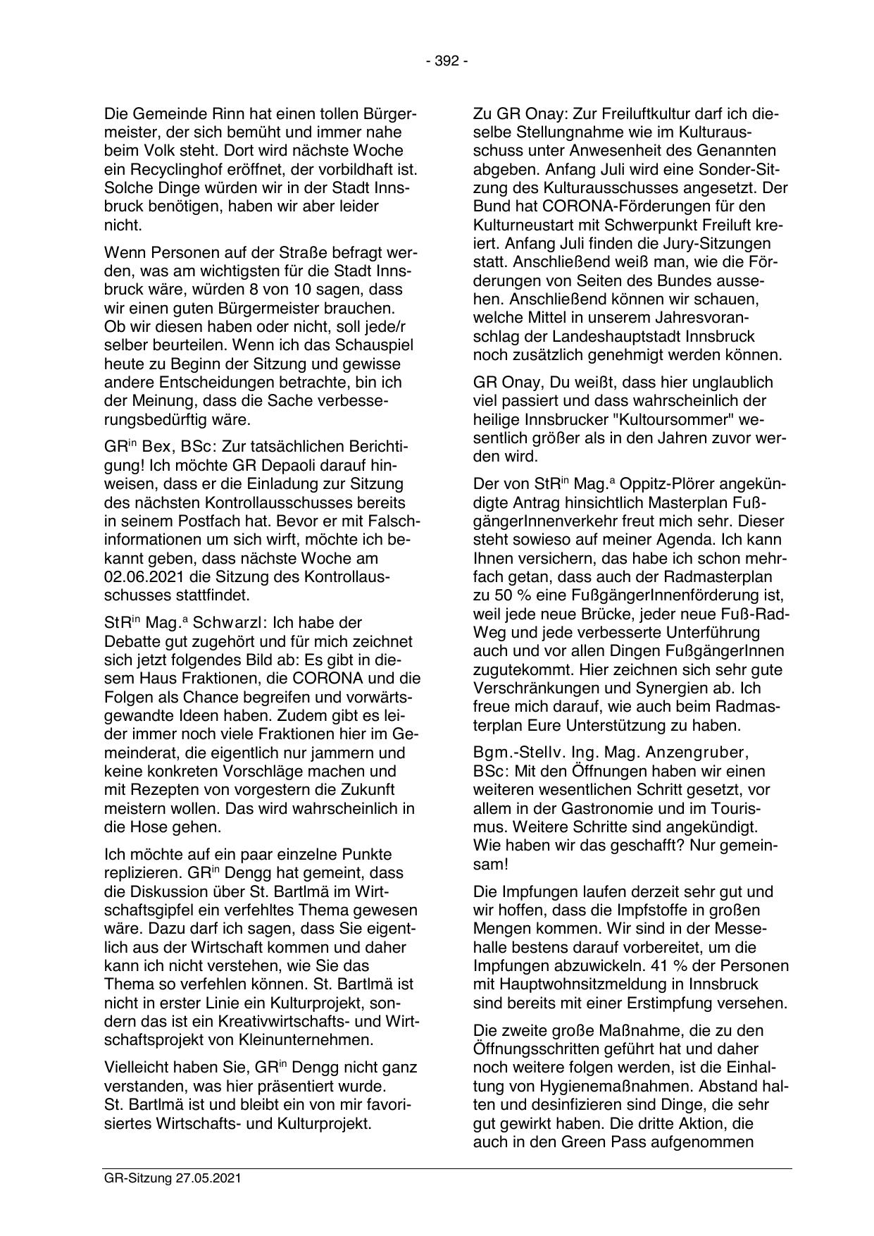 GRin Bex, BSc: Zur tatsächlichen Berichtigung! Ich möchte GR Depaoli darauf hinweisen, dass er die Einladung zur Sitzung