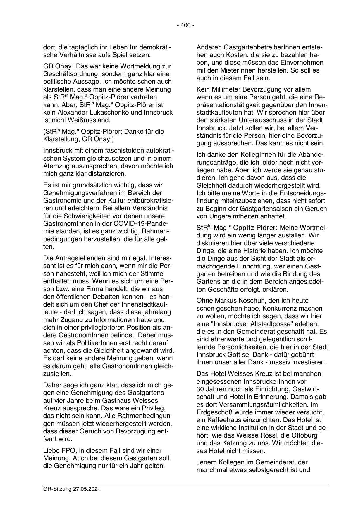 kann. Aber, StRin Mag.a Oppitz-Plörer ist