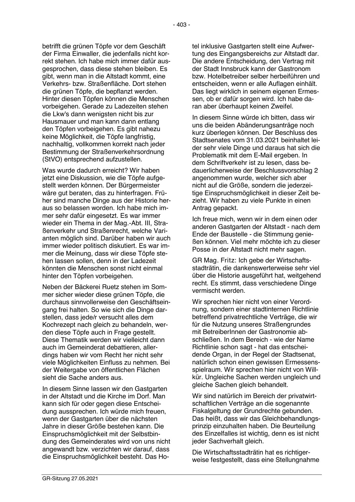 der Firma Einwaller, die jedenfalls nicht korrekt stehen. Ich habe mich immer dafür ausgesprochen, dass diese stehen bleiben. Es