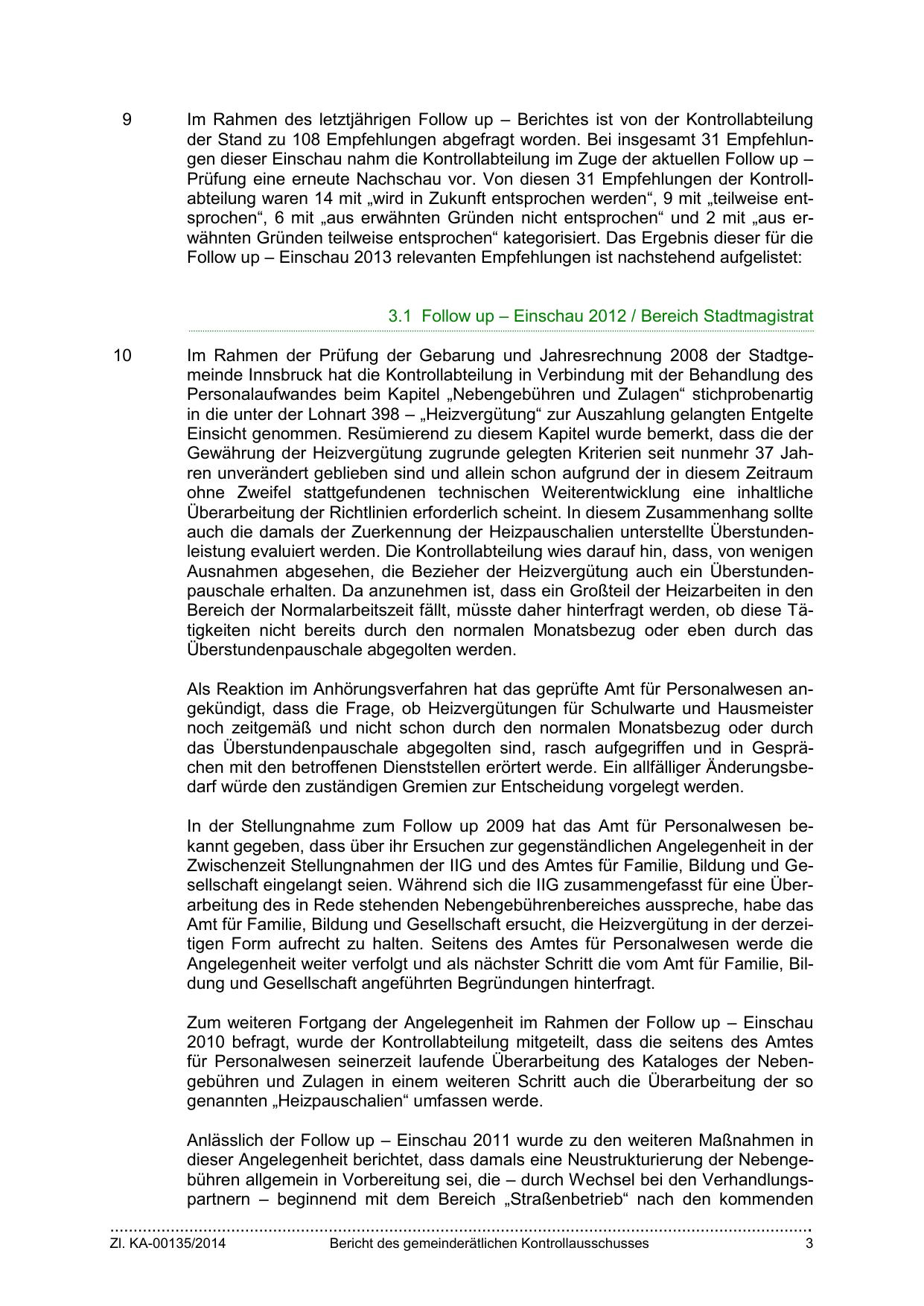 3.1 Follow up – Einschau 2012 / Bereich Stadtmagistrat