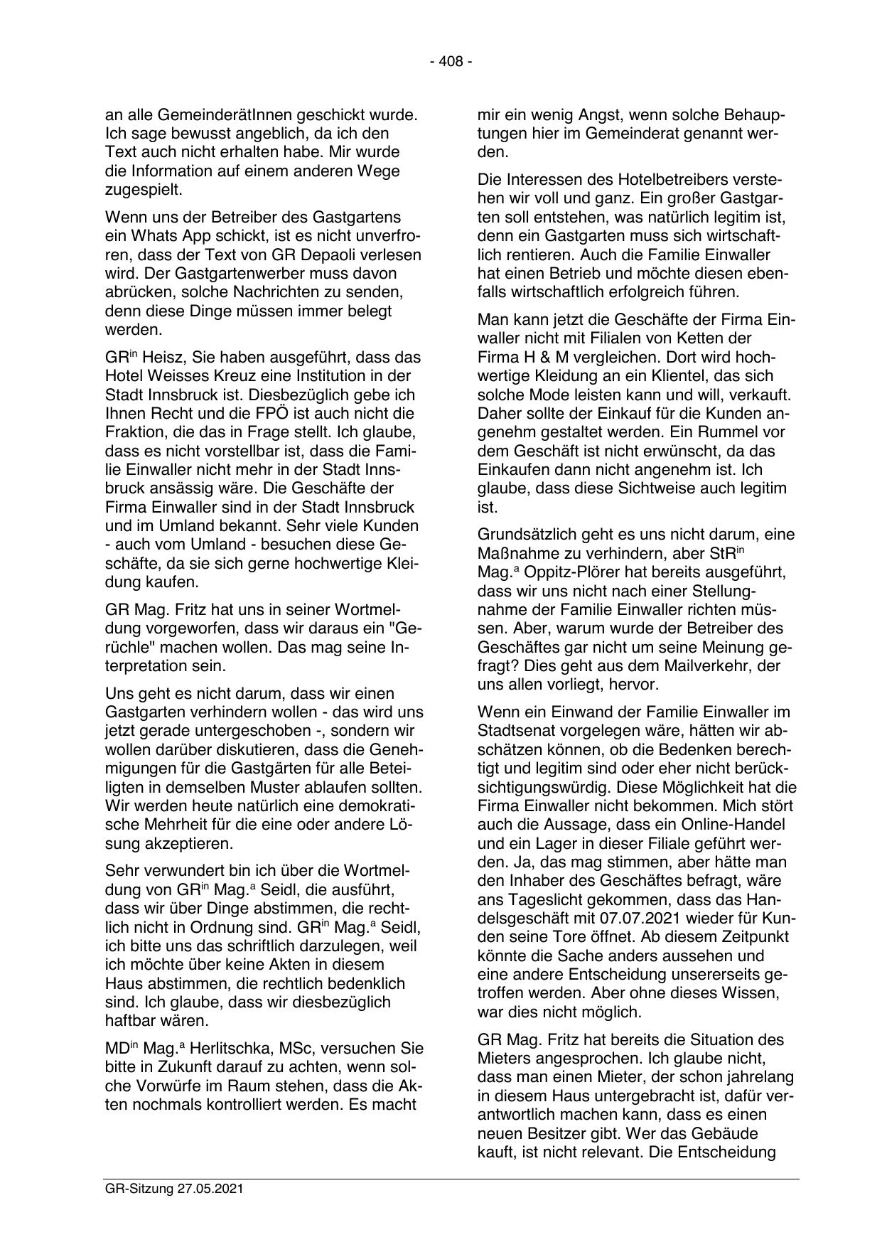 ein Whats App schickt, ist es nicht unverfroren, dass der Text von GR Depaoli verlesen