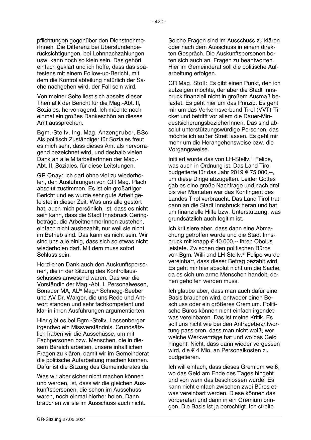 Ich kritisiere aber, dass dann eine Abmachung getroffen wurde und die Stadt Innsbruck mit knapp € 40.000,-- ihren Obolus