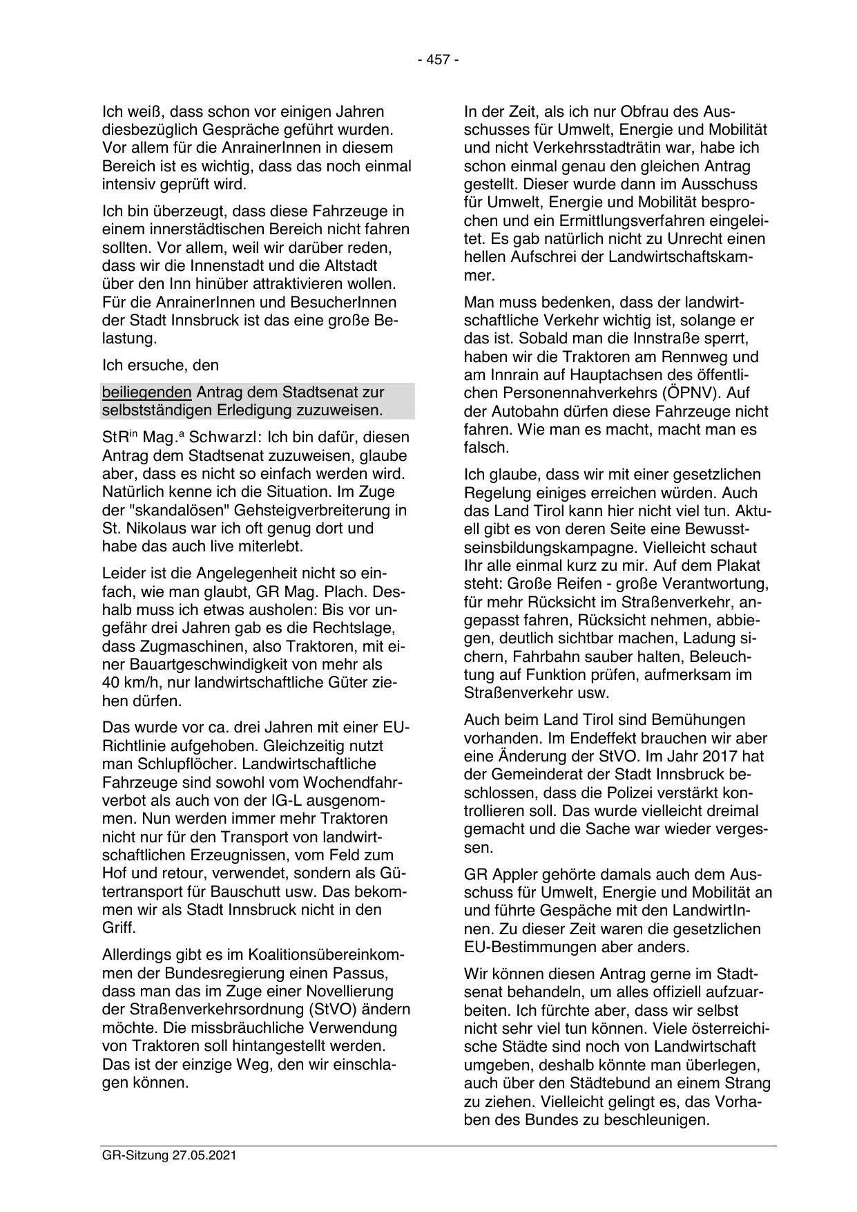 Hof und retour, verwendet, sondern als Gütertransport für Bauschutt usw. Das bekommen wir als Stadt Innsbruck nicht in den