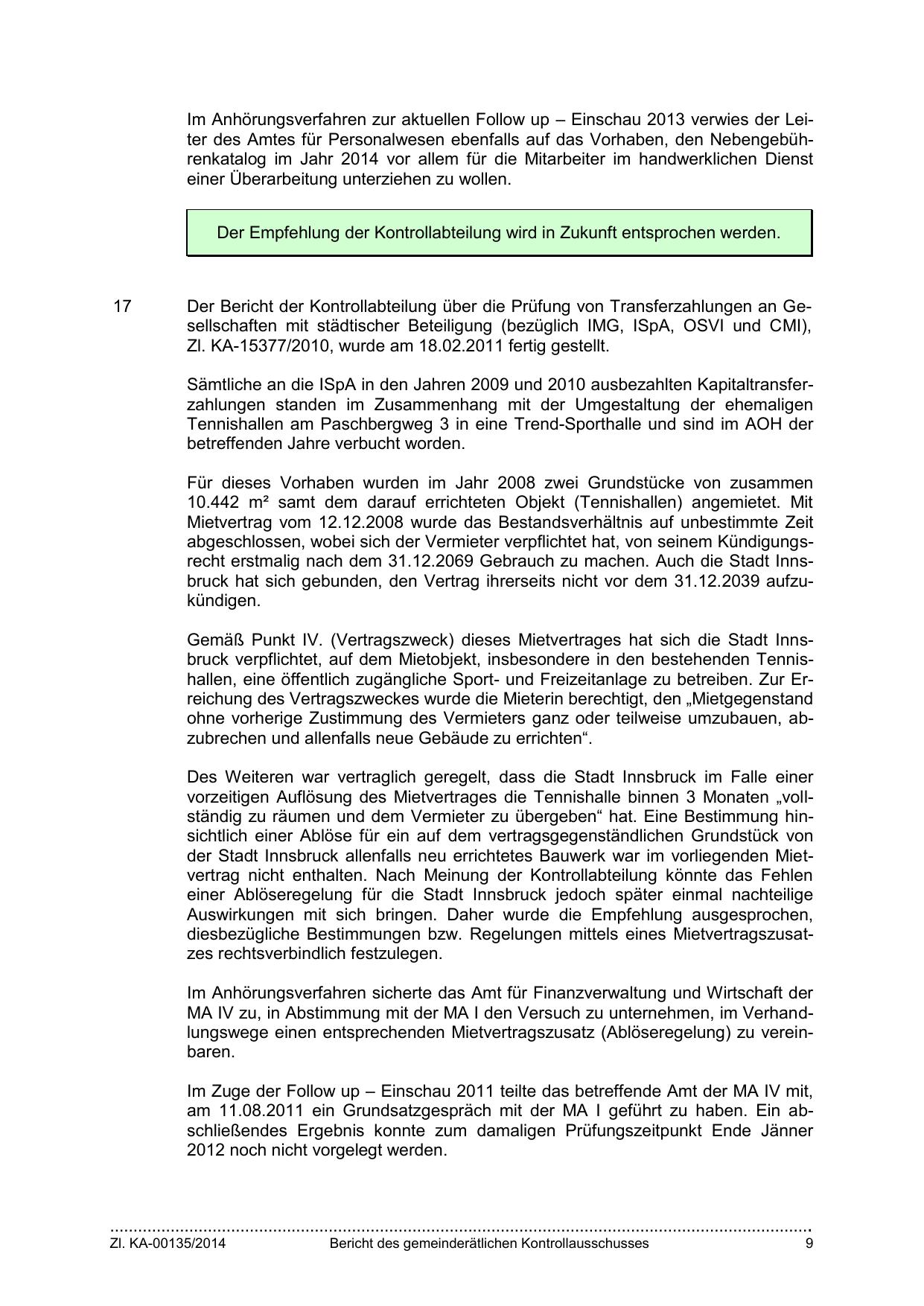 der Stadt Innsbruck allenfalls neu errichtetes Bauwerk war im vorliegenden Mietvertrag nicht enthalten. Nach Meinung der Kontrollabteilung könnte das Fehlen
