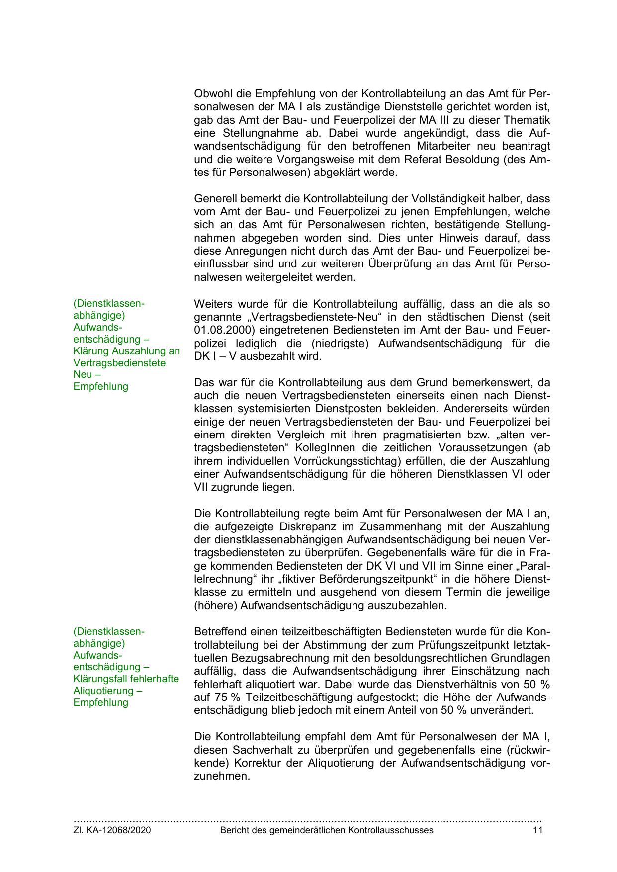 der dienstklassenabhängigen Aufwandsentschädigung bei neuen Vertragsbediensteten zu überprüfen. Gegebenenfalls wäre für die in Frage kommenden Bediensteten der DK VI und VII im Sinne einer „Parallelrechnung“ ihr „fiktiver Beförderungszeitpunkt“ in die höhere Dienstklasse zu ermitteln und ausgehend von diesem Termin die jeweilige