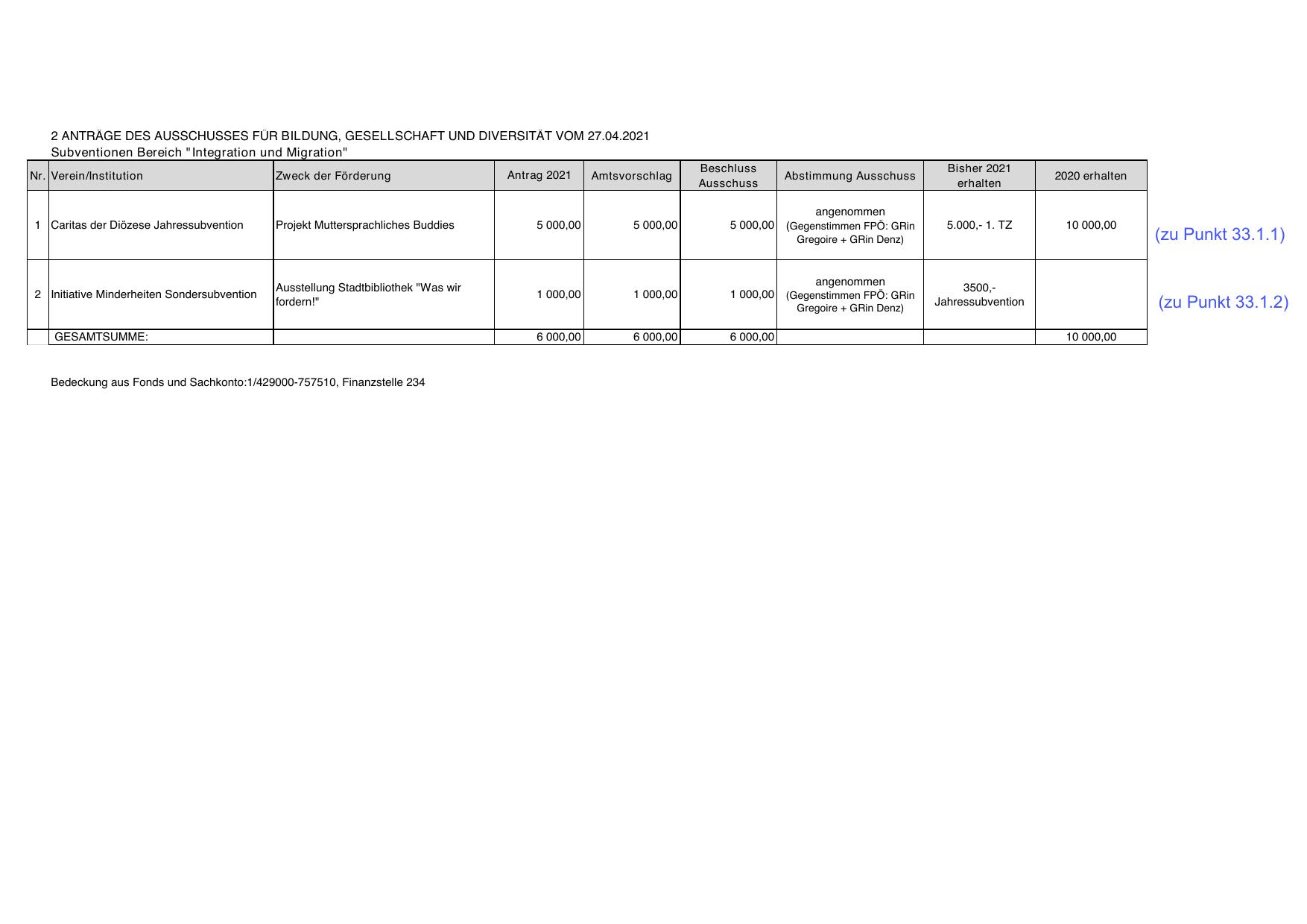 2 ANTRÄGE DES AUSSCHUSSES FÜR BILDUNG, GESELLSCHAFT UND DIVERSITÄT VOM 27.04.2021