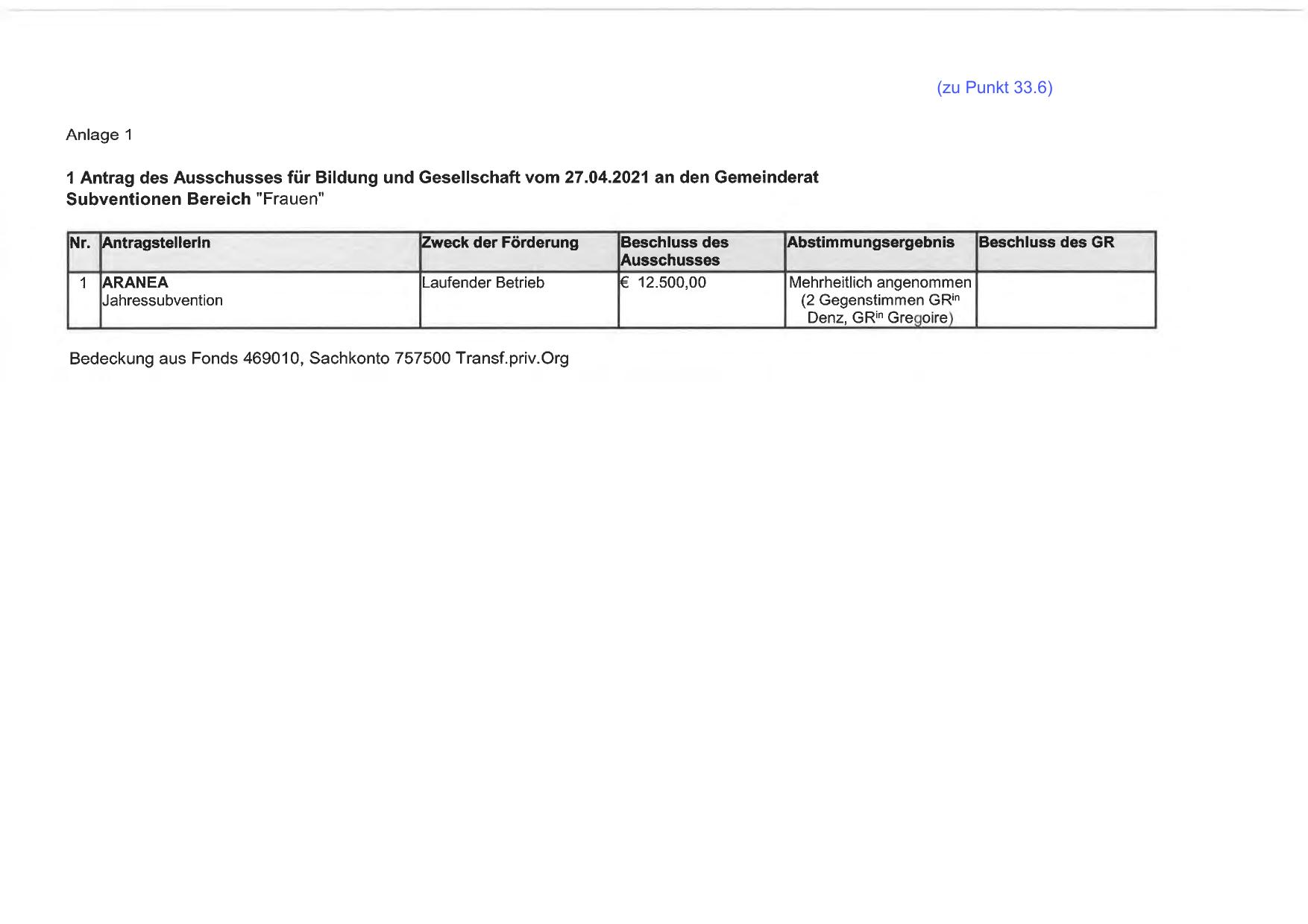 1 Antrag des Ausschusses für Bildung und Gesellschaft vom 27.04.2021 an den Gemeinderat