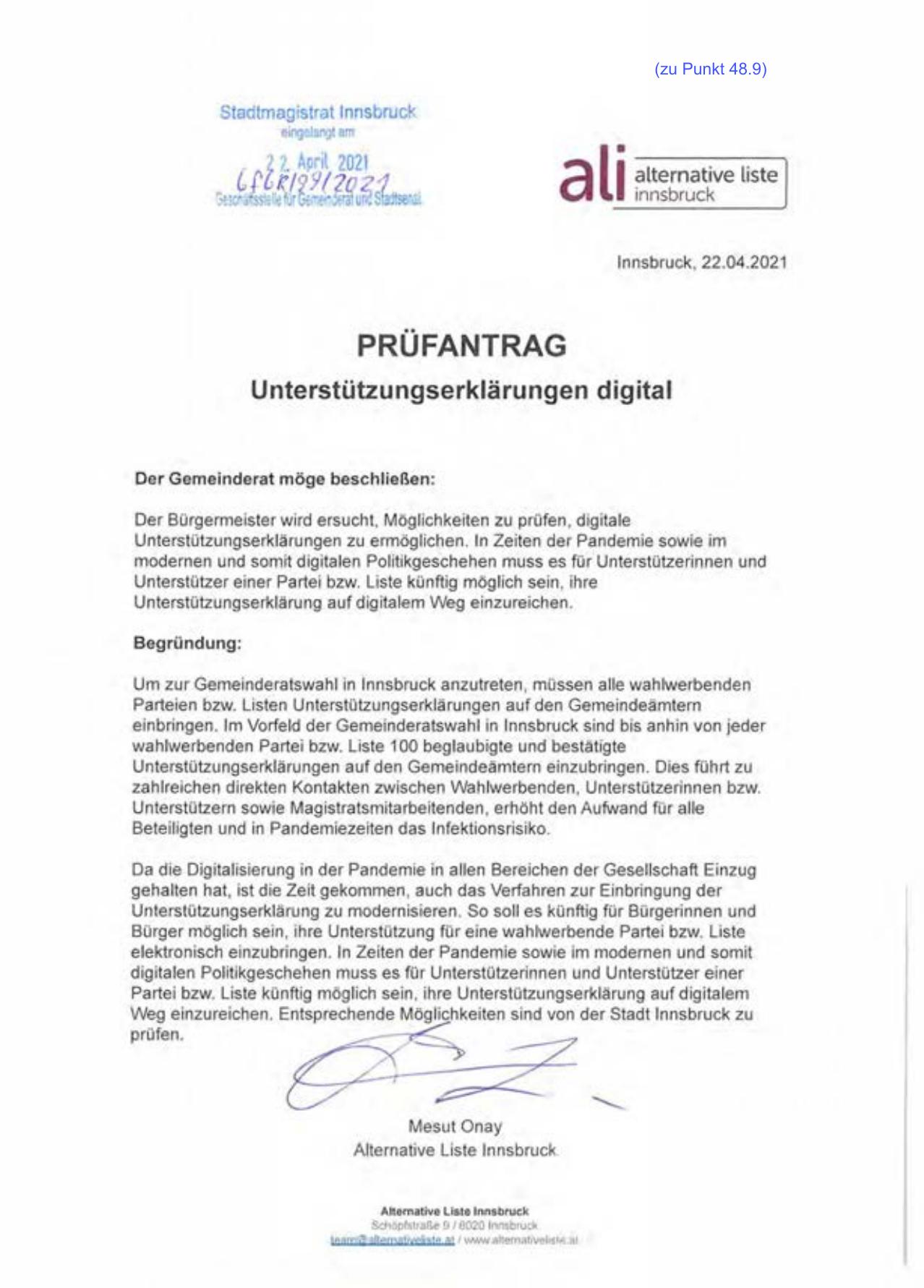 Um zur Gemeinderatswahl in Innsbruck anzutreten, müssen alle wahlwerbenden
