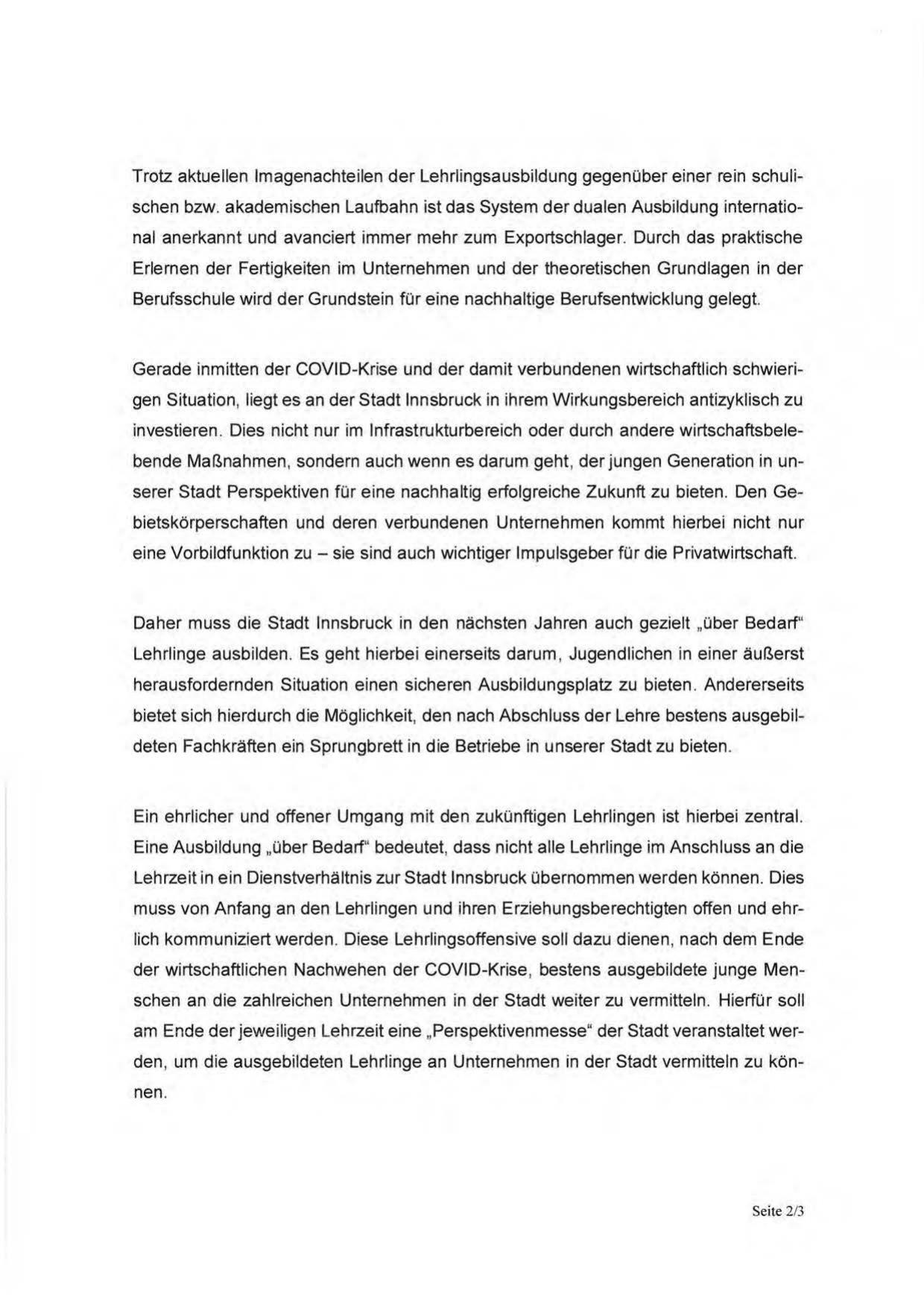 Lehrzeit in ein Dienstverhältnis zur Stadt Innsbruck übernommen werden können . Dies