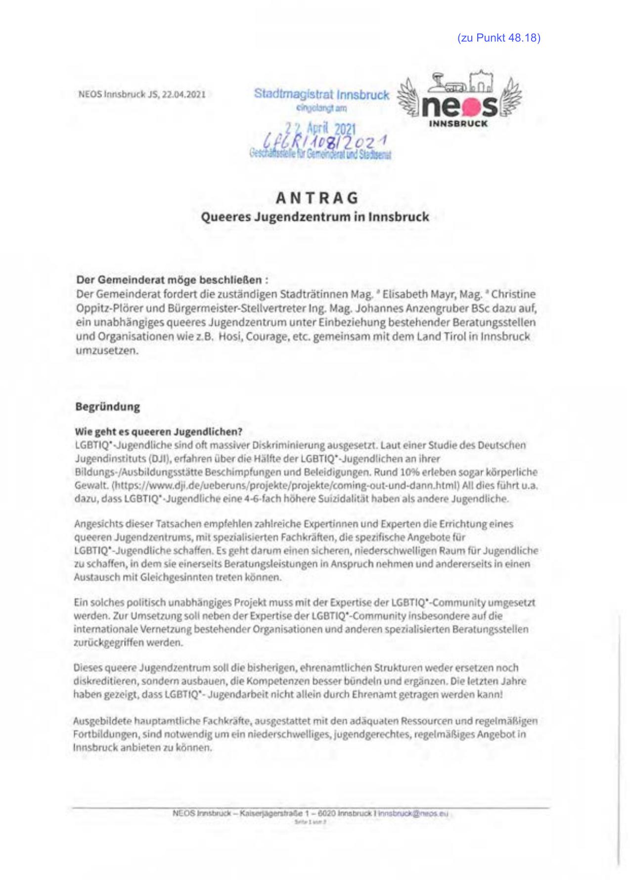 NEOS Innsbruck - Kaiserjägerst1aße 1 - 6020 Innsbruck l lnnsbruck@neos.eu