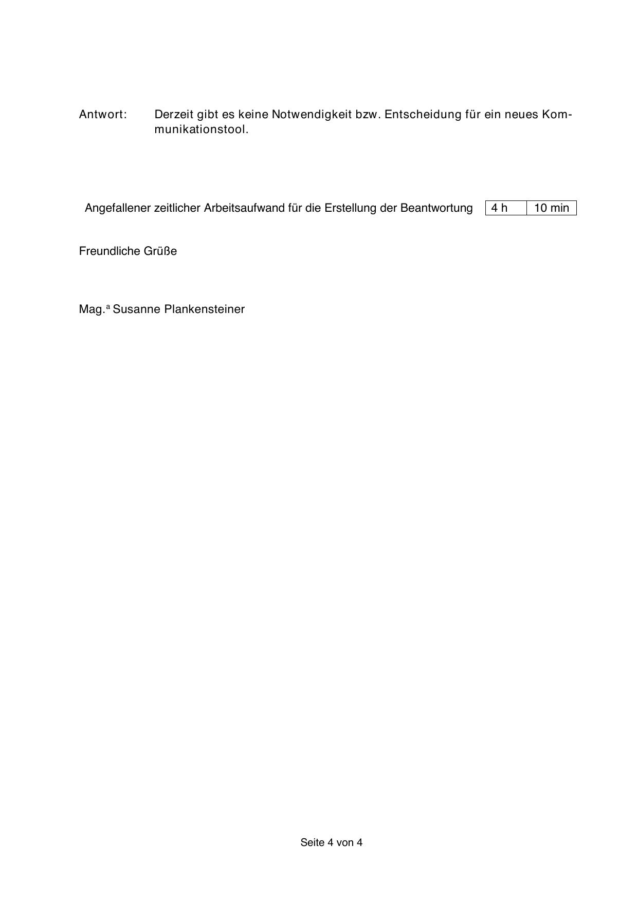 Angefallener zeitlicher Arbeitsaufwand für die Erstellung der Beantwortung