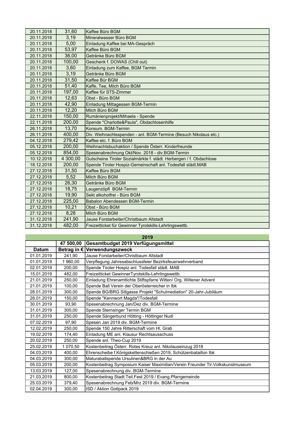 47 500,00 Gesamtbudget 2019 Verfügungsmittel