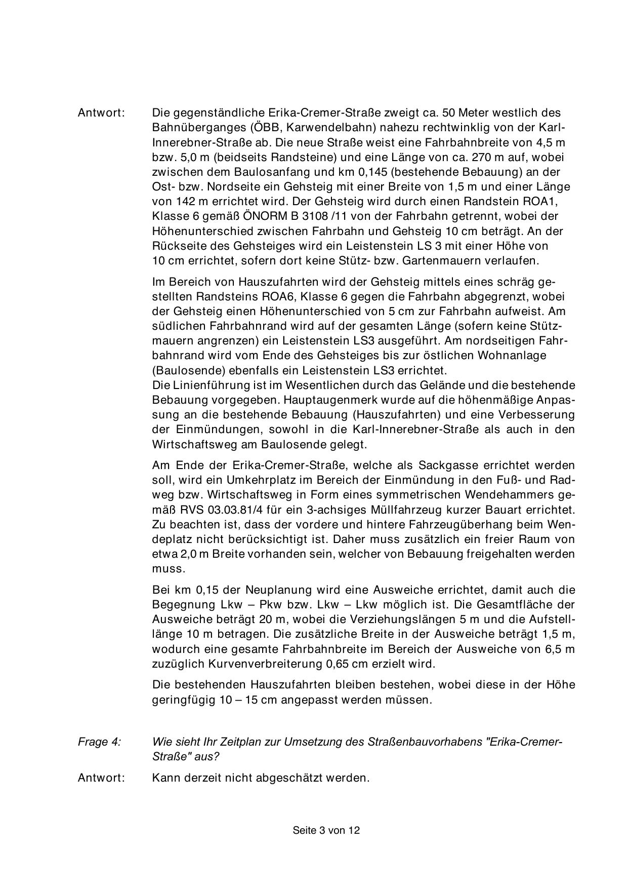 Bahnüberganges (ÖBB, Karwendelbahn) nahezu rechtwinklig von der KarlInnerebner-Straße ab. Die neue Straße weist eine Fahrbahnbreite von 4,5 m