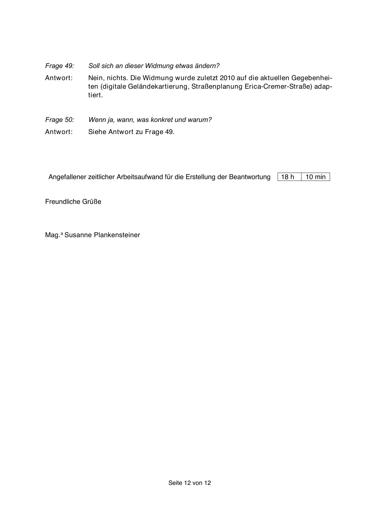 Angefallener zeitlicher Arbeitsaufwand für die Erstellung der Beantwortung