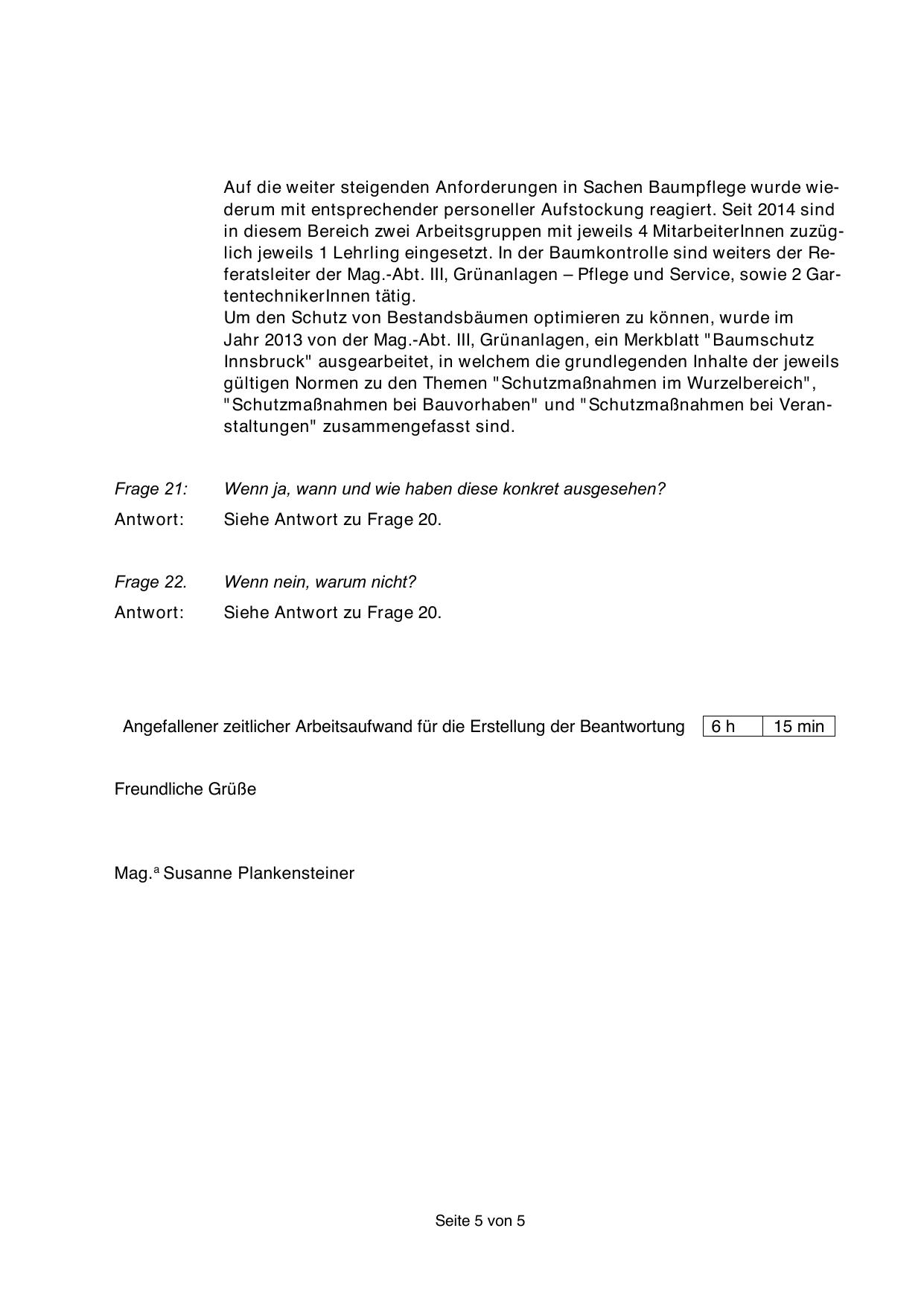 Angefallener zeitlicher Arbeitsaufwand für die Erstellung der Beantwortung