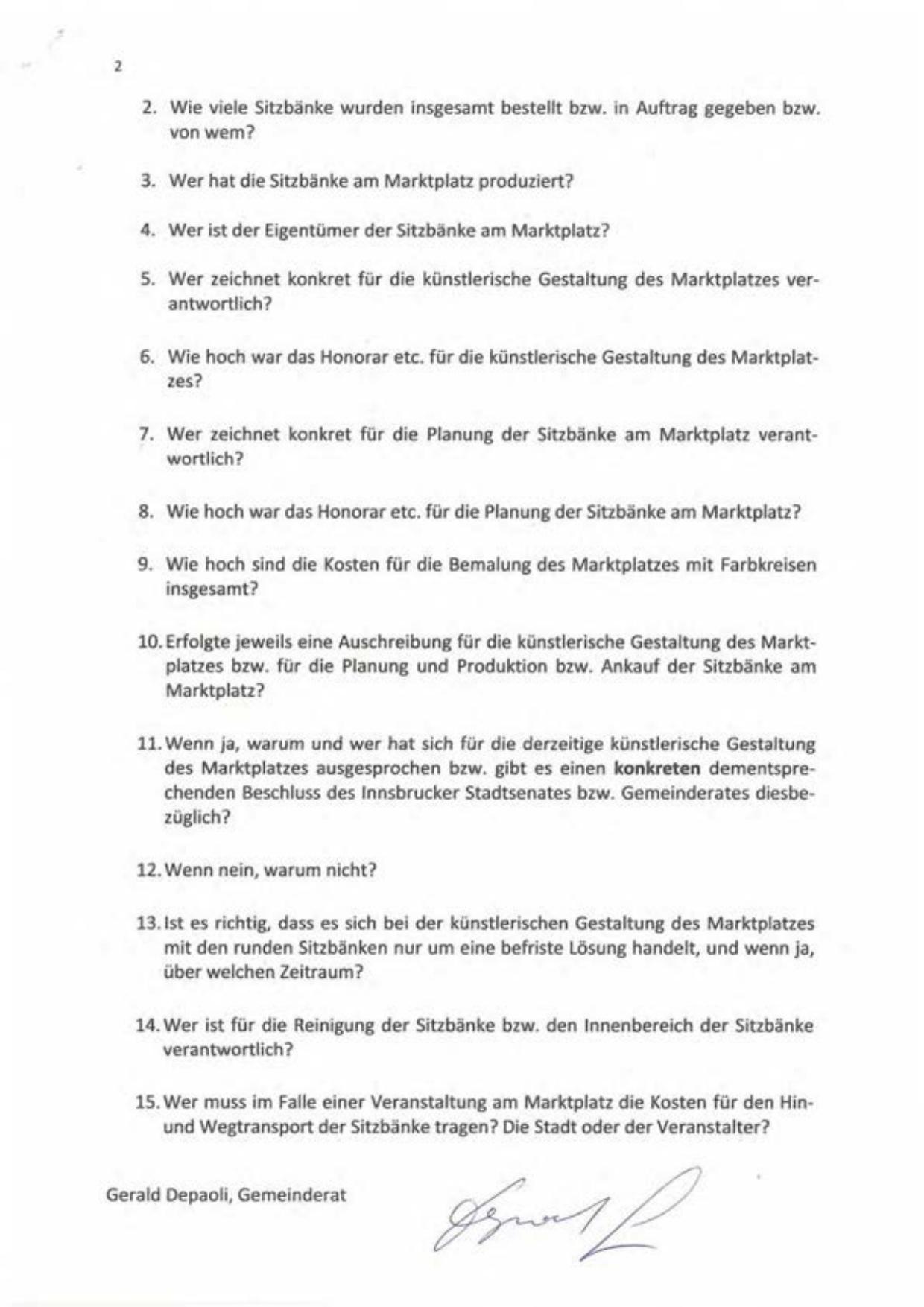 des Marktplatzes ausgesprochen bzw. gibt es einen konkreten dementsprechenden Beschluss des lnnsbrucker Stadtsenates bzw. Gemeinderates diesbezüglich?