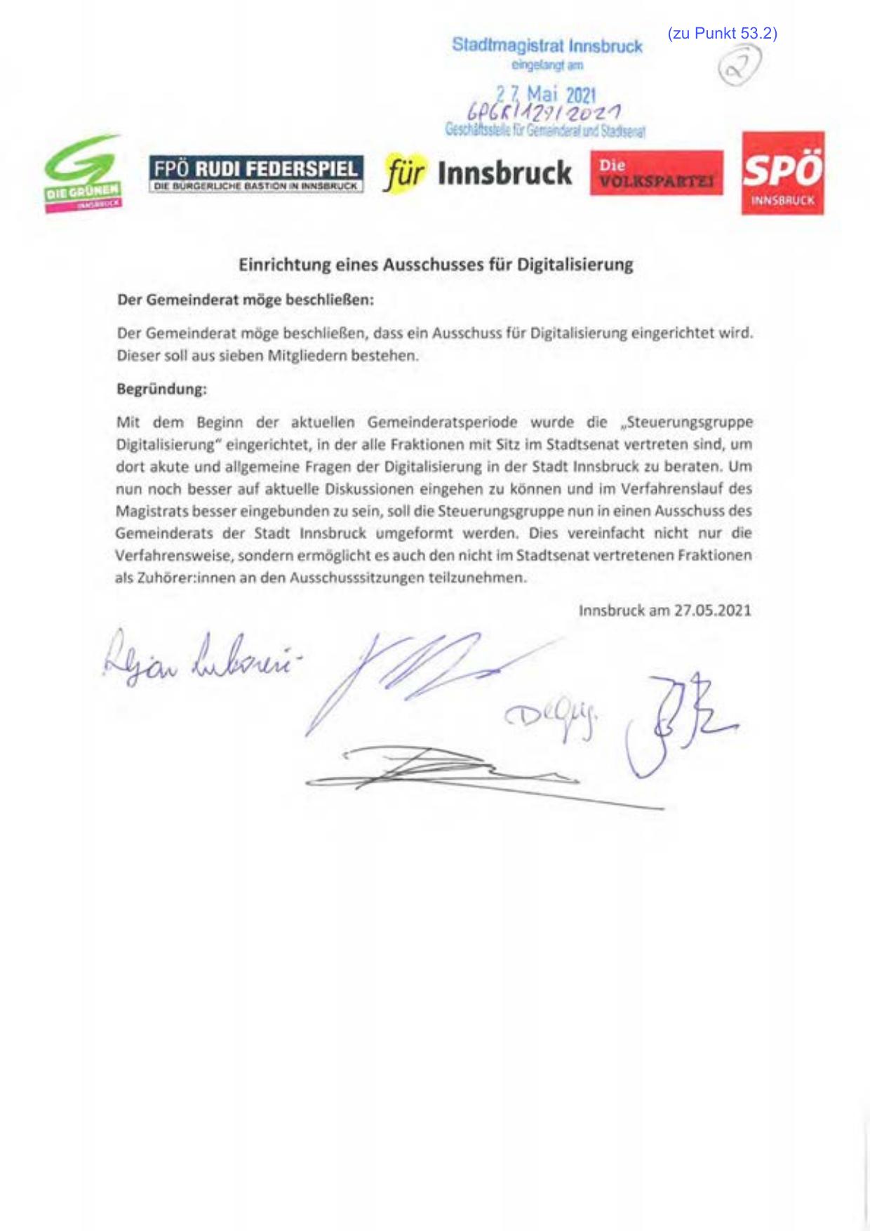dort akute und allgemeine Fragen der Digitalisierung in der Stadt Innsbruck zu beraten. Um