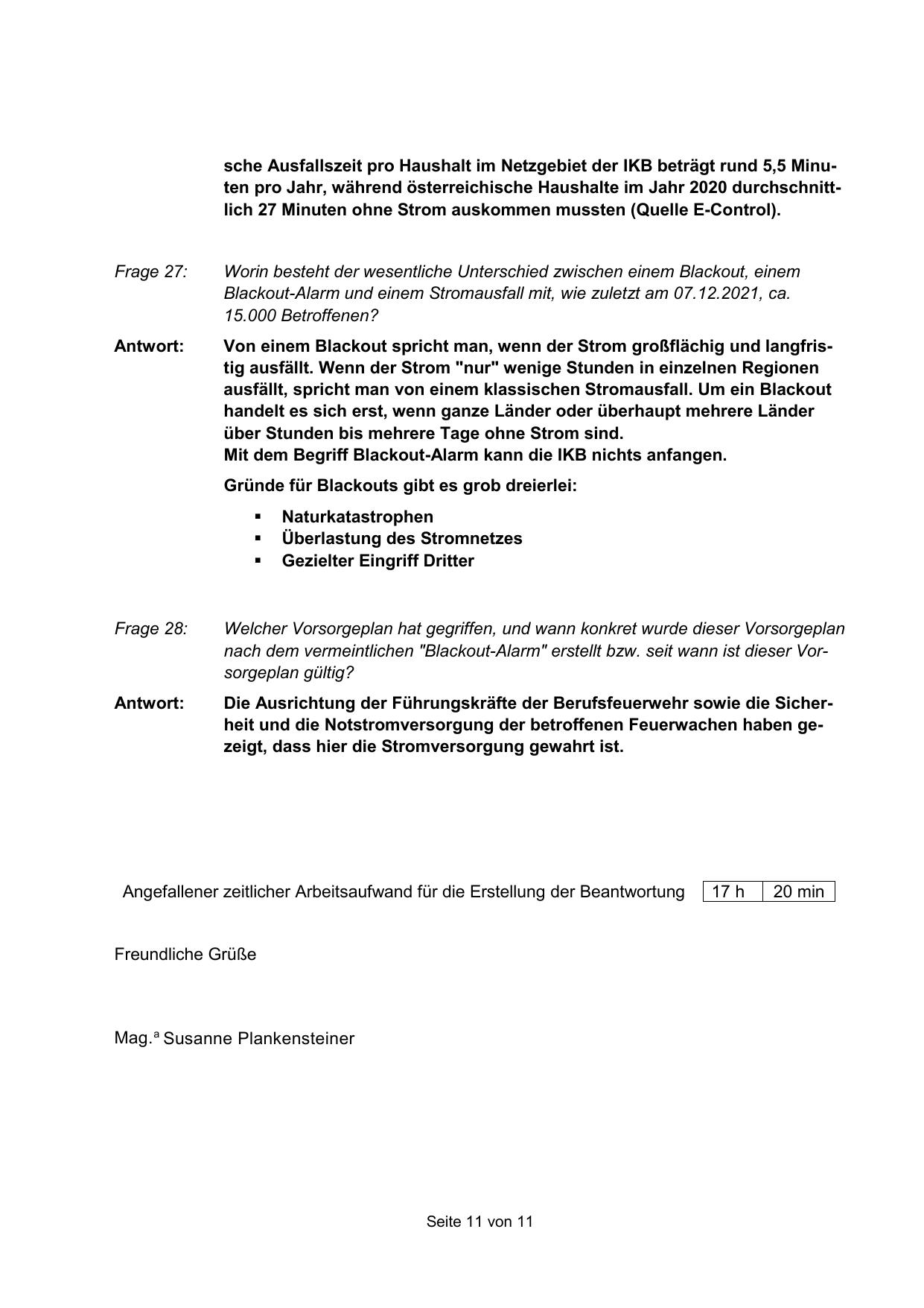 sche Ausfallszeit pro Haushalt im Netzgebiet der IKB beträgt rund 5,5 Minuten pro Jahr, während österreichische Haushalte im Jahr 2020 durchschnittlich 27 Minuten ohne Strom auskommen mussten (Quelle E-Control).
