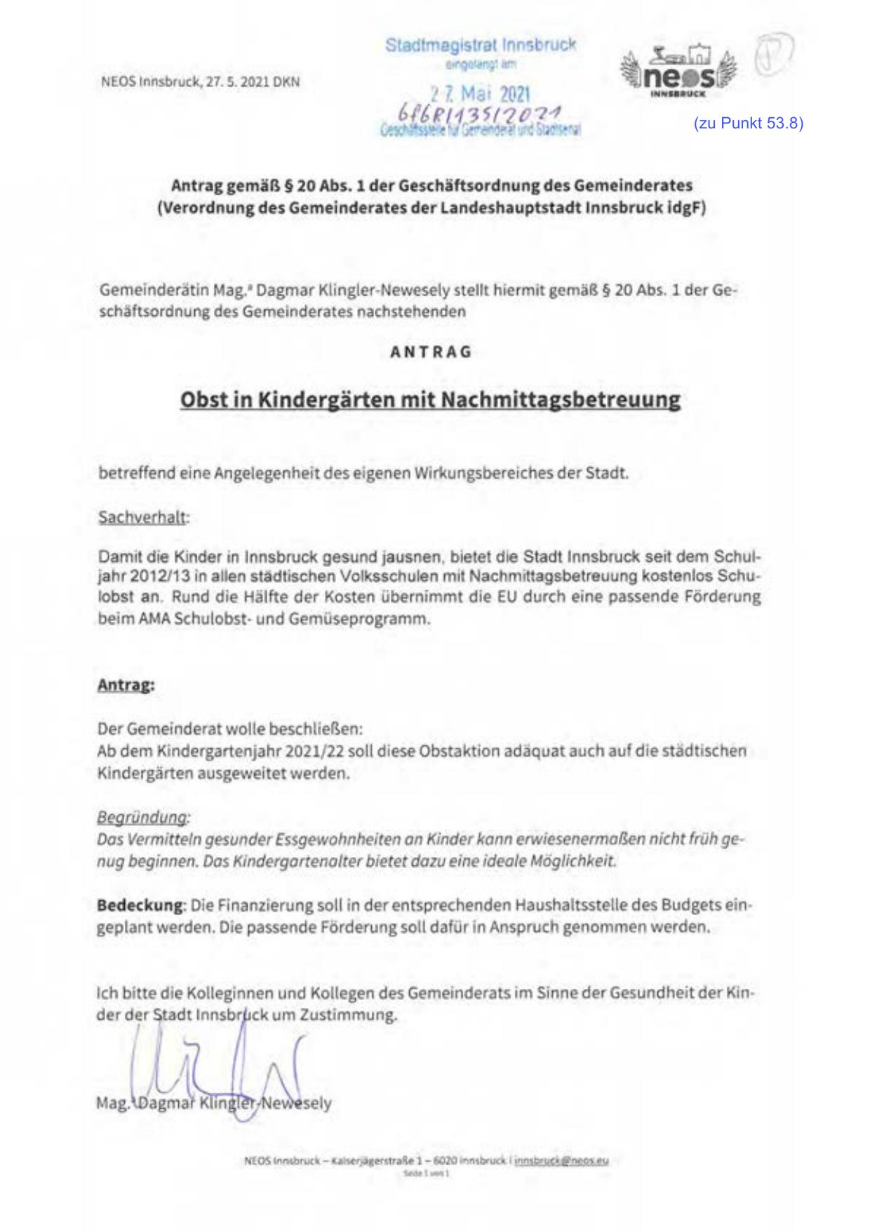 Ich b itte die Kollegin nen und Kollegen des Gemeinderats im Sinne der Gesundheit der Kinder der tadt lnnsbr ck um Zustimm ung.