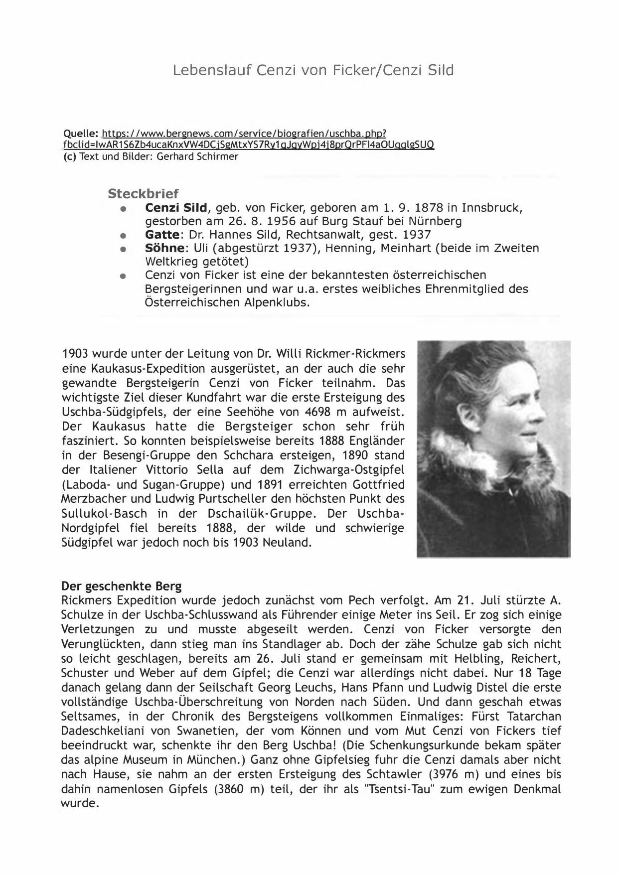 Lebenslauf Cenzi von Ficker/Cenzi Sild