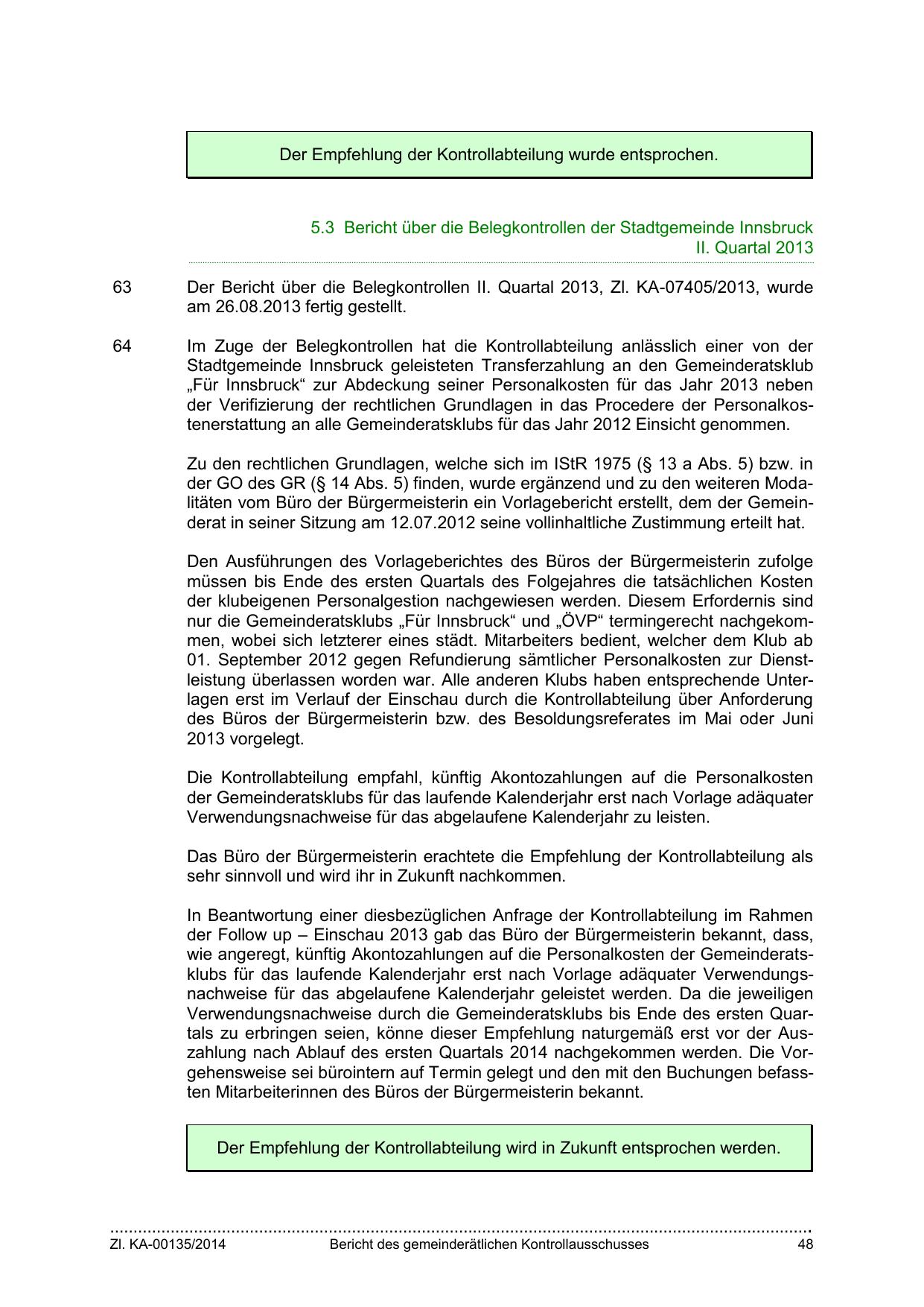 5.3 Bericht über die Belegkontrollen der Stadtgemeinde Innsbruck