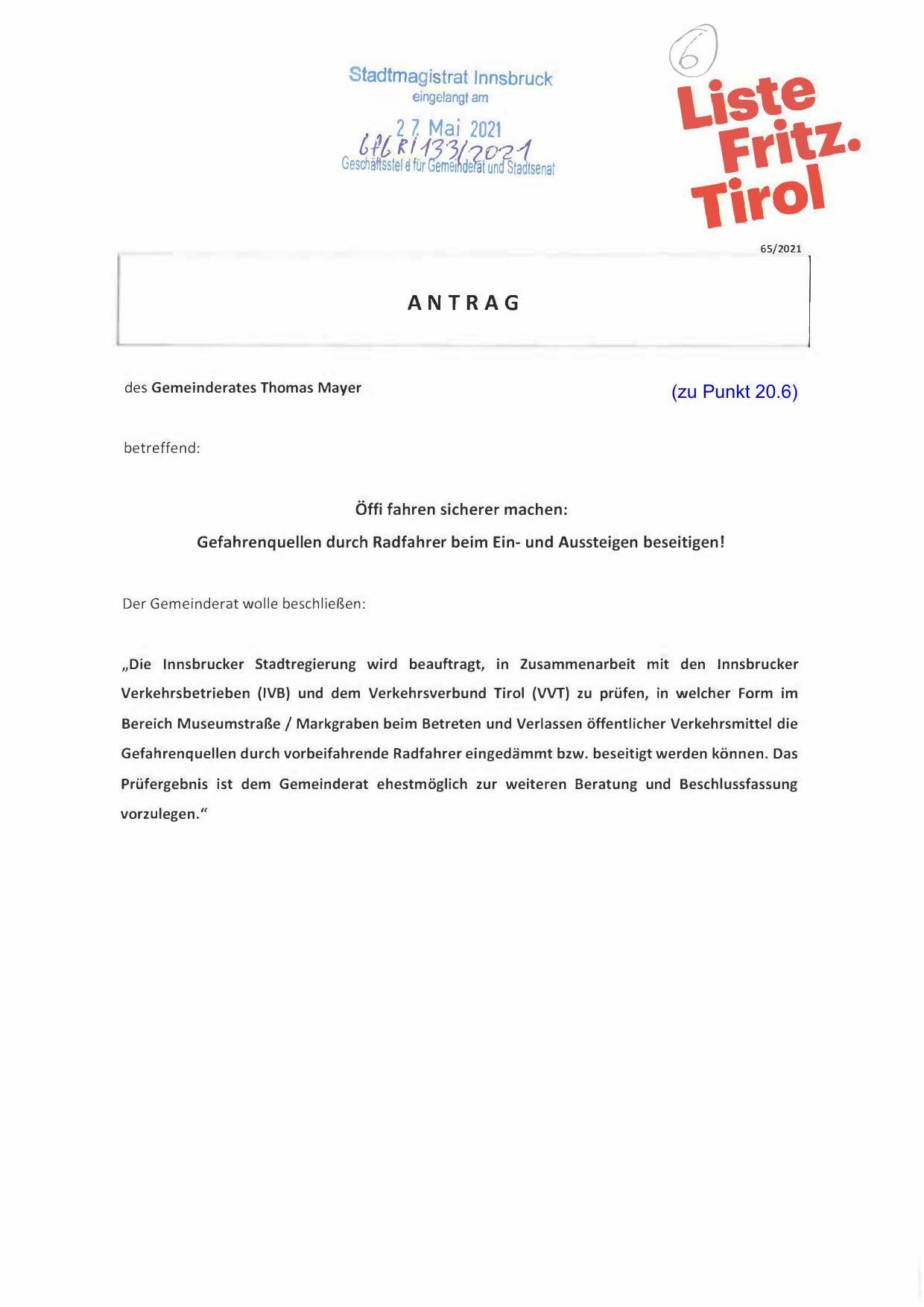 „Die lnnsbrucker Stadtregierung wird beauftragt, in Zusammenarbeit mit den lnnsbrucker