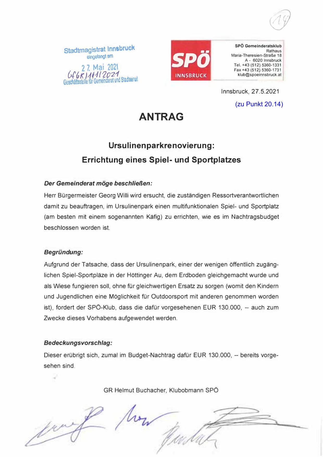 damit zu beauftragen, im Ursulinenpark einen multifunktionalen Spiel- und Sportplatz