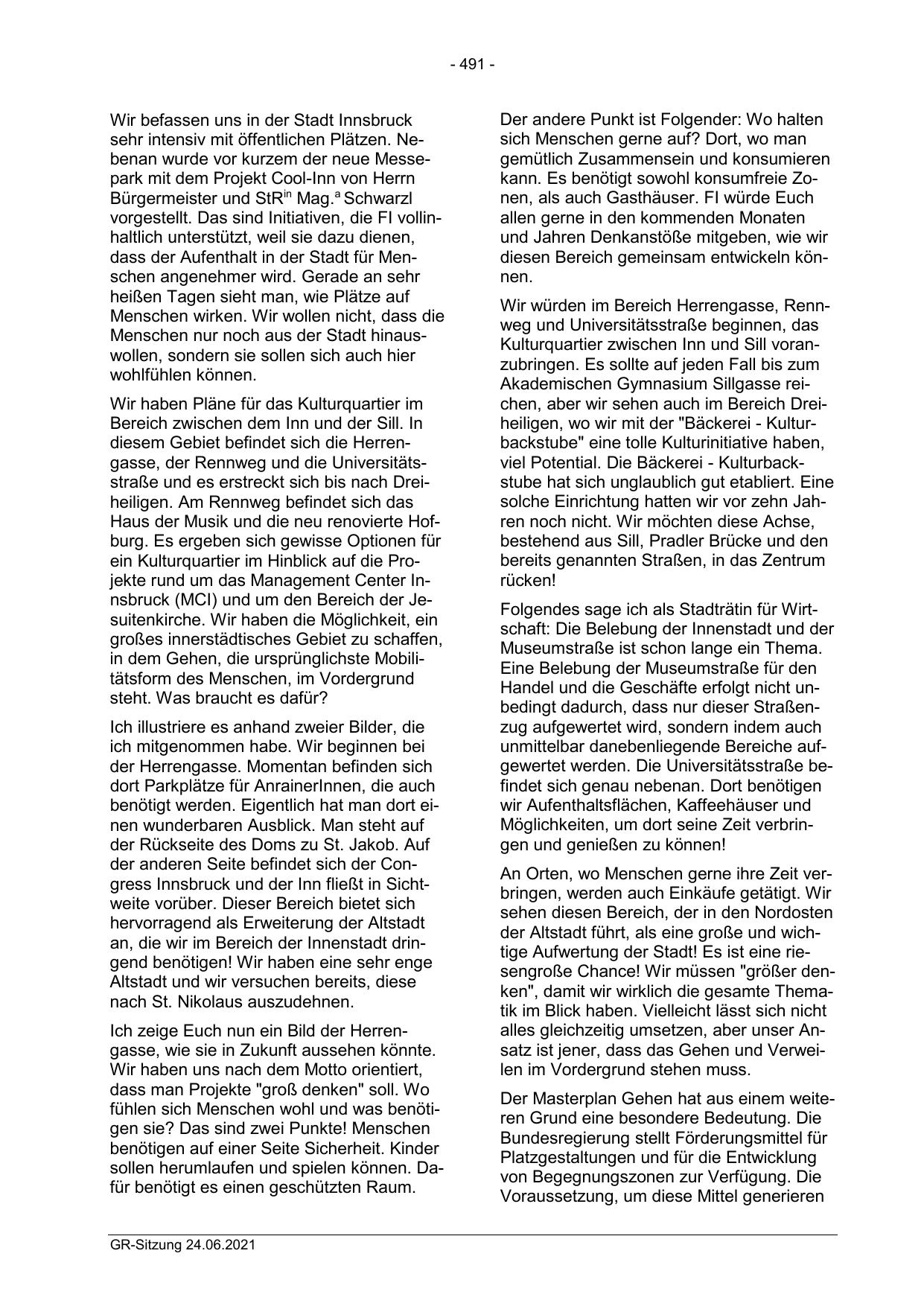 ein Kulturquartier im Hinblick auf die Projekte rund um das Management Center Innsbruck (MCI) und um den Bereich der Jesuitenkirche. Wir haben die Möglichkeit, ein