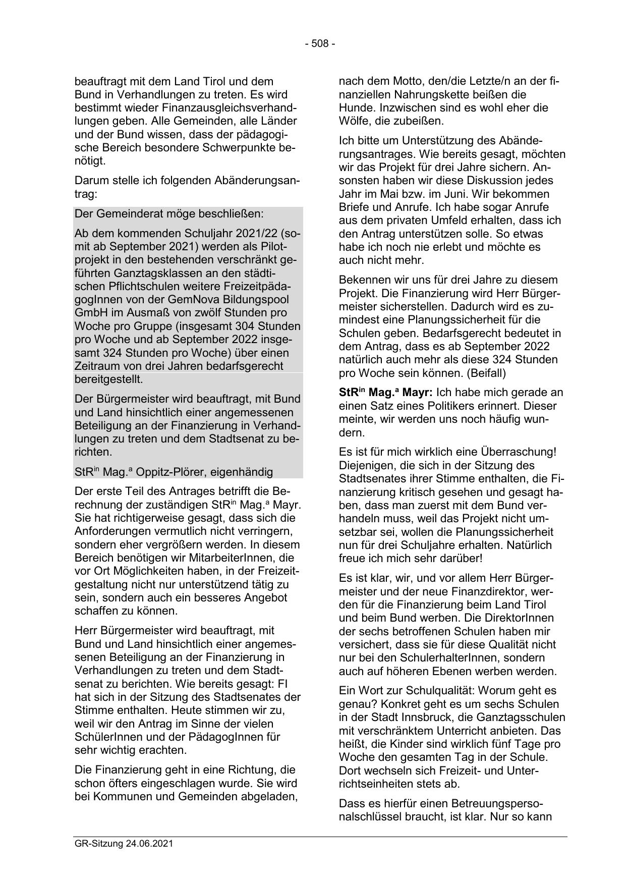Es ist klar, wir, und vor allem Herr Bürgermeister und der neue Finanzdirektor, werden für die Finanzierung beim Land Tirol