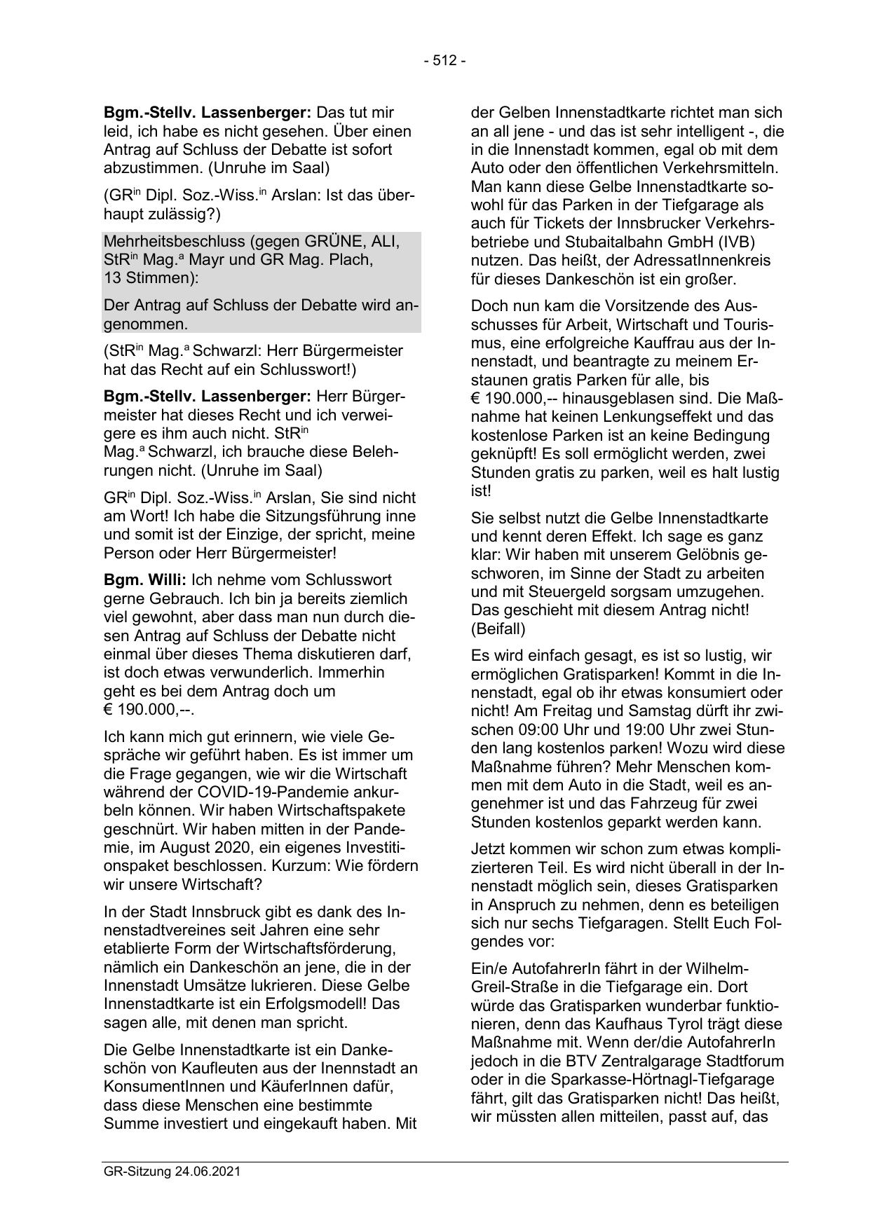 Bgm.-Stellv. Lassenberger: Herr Bürgermeister hat dieses Recht und ich verweigere es ihm auch nicht. StRin