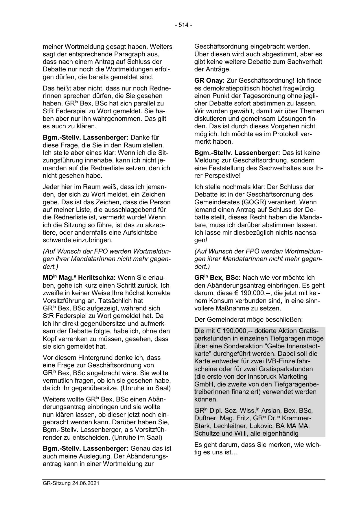 (Auf Wunsch der FPÖ werden Wortmeldungen ihrer MandatarInnen nicht mehr gegendert.)