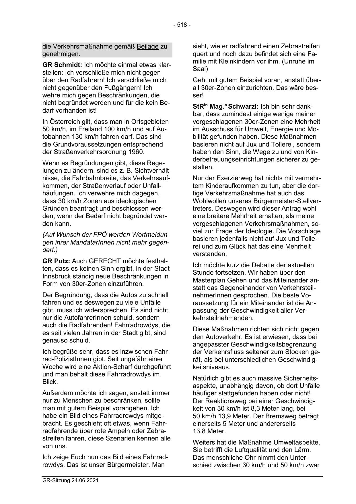 GR Schmidt: Ich möchte einmal etwas klarstellen: Ich verschließe mich nicht gegenüber den Radfahrern! Ich verschließe mich